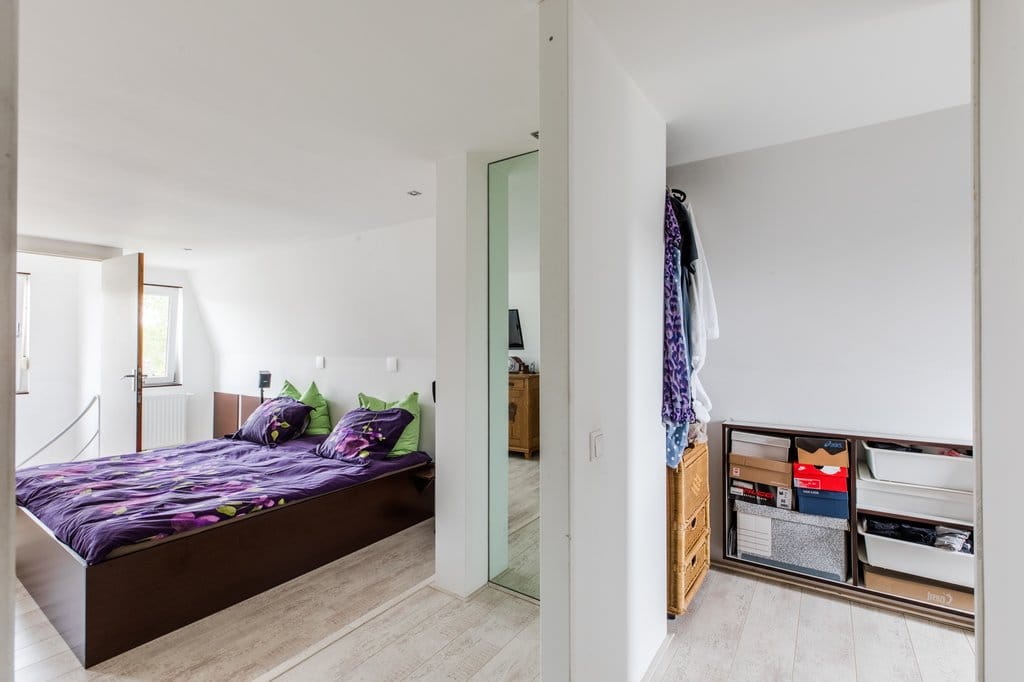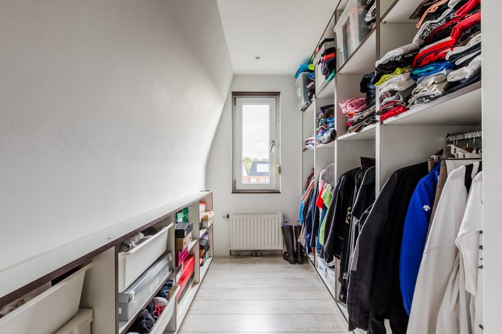 Vanuit de slaapkamer is een doorloop naar de praktische inloopkast met de opstelling van de HR c.v. combiketel van Remeha (1998).