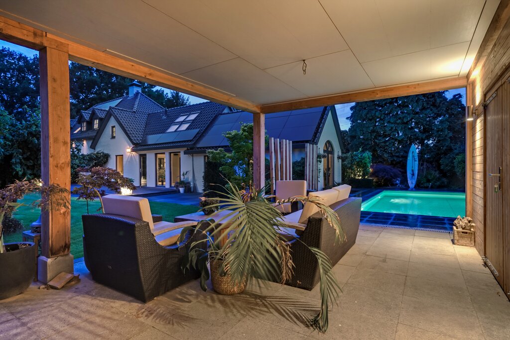 De in 2018 gebouwde veranda van 9.00 x 7.00 meter gemaakt van robuuste Douglas houten palen aansluitend aan de eveneens in dat jaar heropgebouwde elektrolyse zwembad van 8.00 x 4.00 meter met zout en volledig vernieuwde apparatuur, maken deze tuin tot een gedroomde locatie die in menig programma niet zou misstaan.