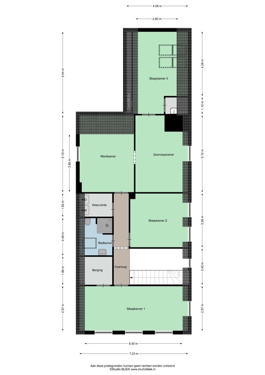 Slaapkamer 3 bevindt zich aan achterzijde betreft de Master bedroom met 4 grote Velux dakramen die uitzicht biedt op, de onder architectuur ingerichte tuin. Verder vindt u in deze kamer een airco unit en bergkasten. De kamer is afgewerkt met vloerbedekking en gestukadoorde wanden en -plafond met inbouwverlichting.