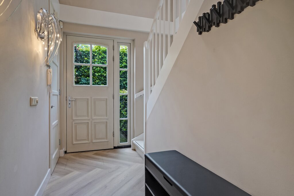 Bij binnenkomst door de hardhouten voordeur wordt u direct omarmt door de vide. Deze wordt versterkt door daglicht vanuit het dakraam.