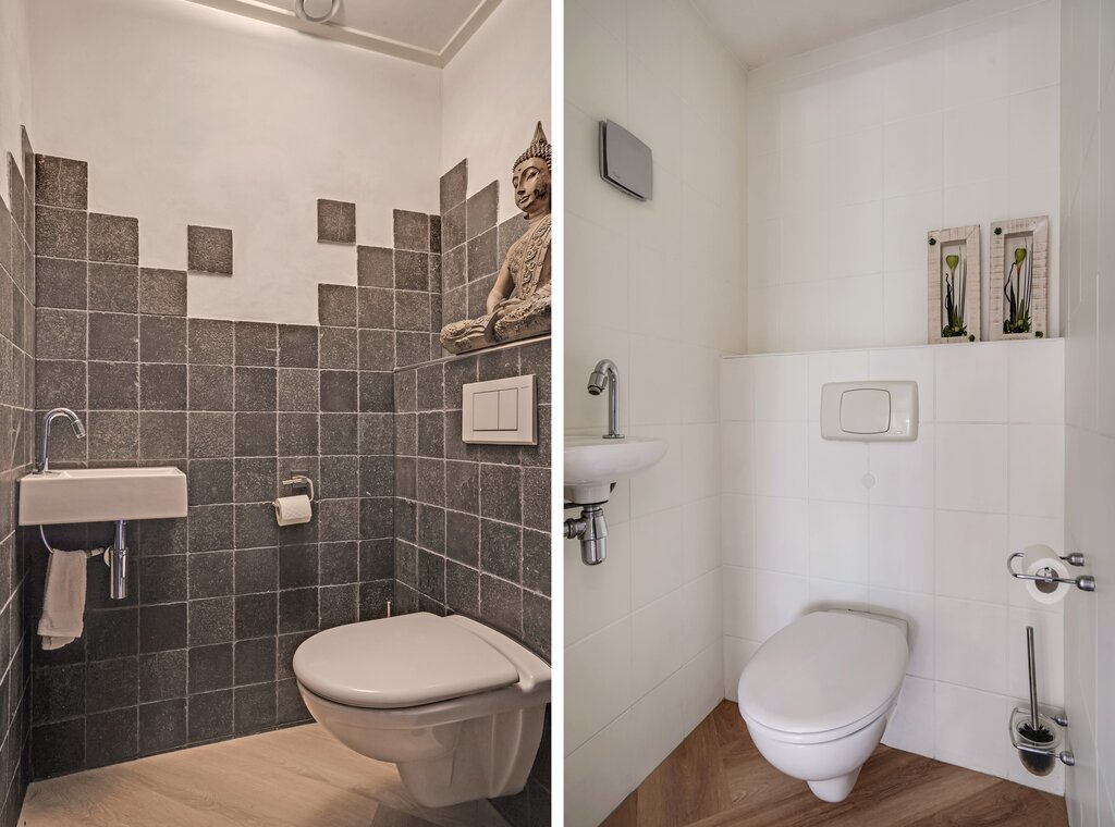 In de gang valt direct de moderne kleurstelling op de gestukadoorde wanden op en het in visgraatmotief gelegde PVC vloer die u op de gehele begane grond (exclusief sportkamer) terug gaat vinden.