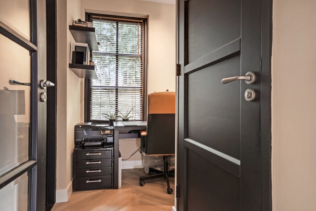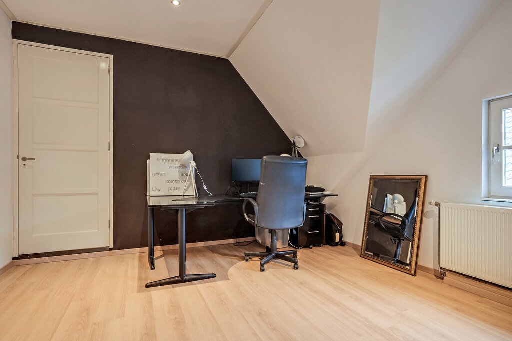 Hierna komt u in een zeer royale ruimte, die momenteel als werkkamer wordt gebruikt, afgewerkt met een laminaatvloer, gestukadoorde wanden en plafond met inbouwverlichting. Deze kamer dient momenteel als doorloopkamer via nog een 2e doorloopkamer naar slaapkamer 3, maar is door een relatief eenvoudige indelingsverandering te gebruiken als nog een extra slaapkamer en/of inloopkast.