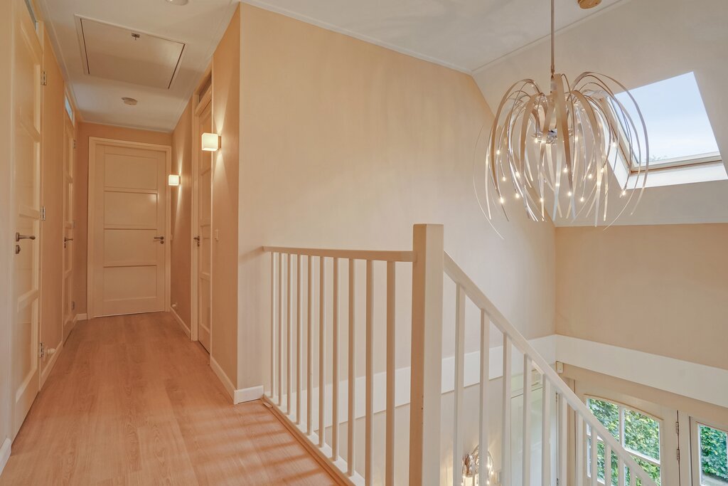 In de centrale hal loopt u via de trap naar de volledig gestucadoorde overloop en vanuit daar kunt u naar beneden kijken via de indrukwekkende vide.