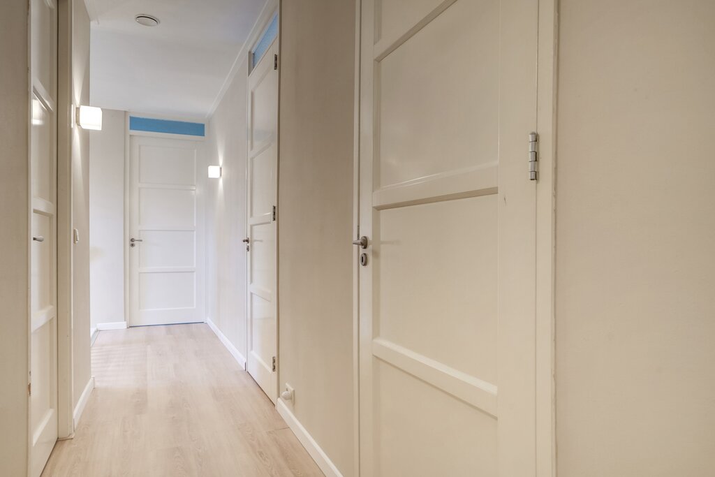 Rechts in de gang zit de meterkast voor het voorste deel van het huis met de elektrameter en elektrakast. Deze is voorzien van diverse groepen en 3-fase stroom en links de trap naar 1e verdieping.