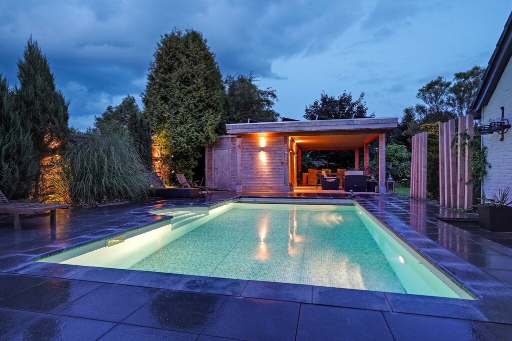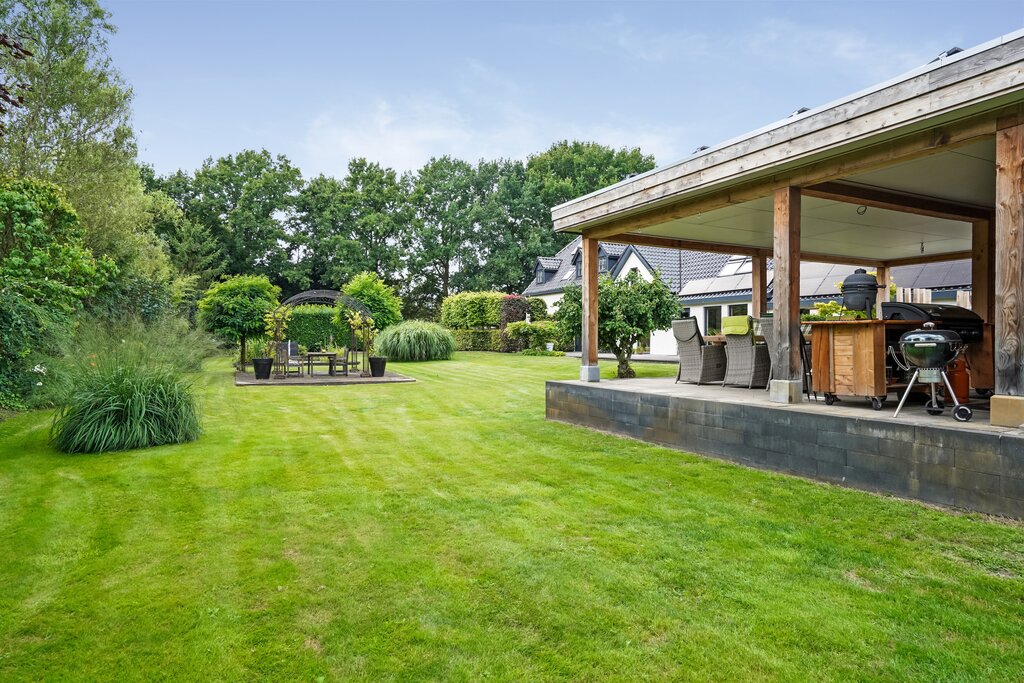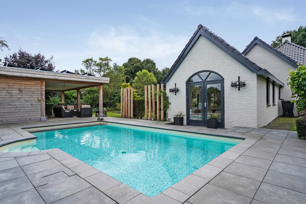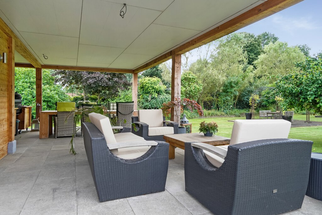 De in 2018 gebouwde veranda van 9.00 x 7.00 meter gemaakt van robuuste Douglas houten palen aansluitend aan de eveneens in dat jaar heropgebouwde elektrolyse zwembad van 8.00 x 4.00 meter met zout en volledig vernieuwde apparatuur, maken deze tuin tot een gedroomde locatie die in menig programma niet zou misstaan.