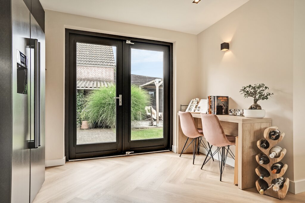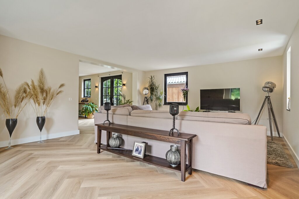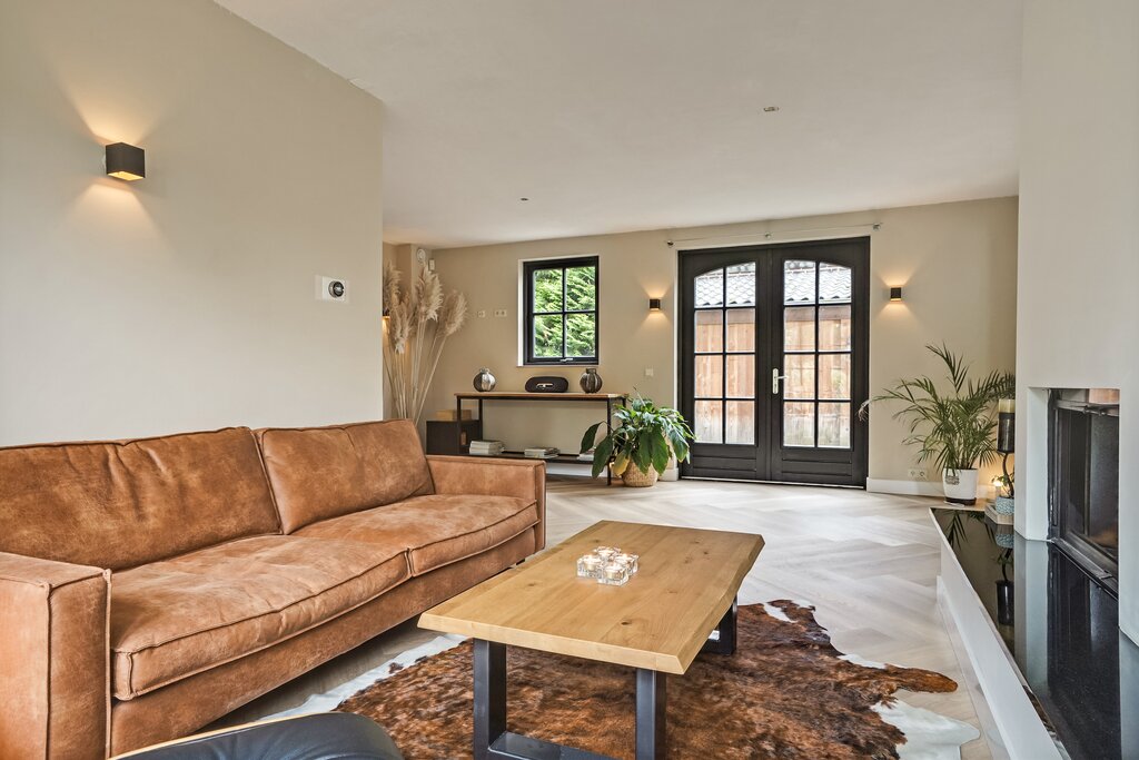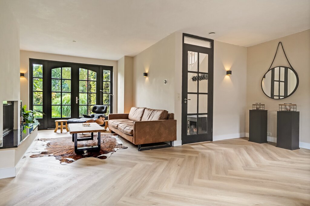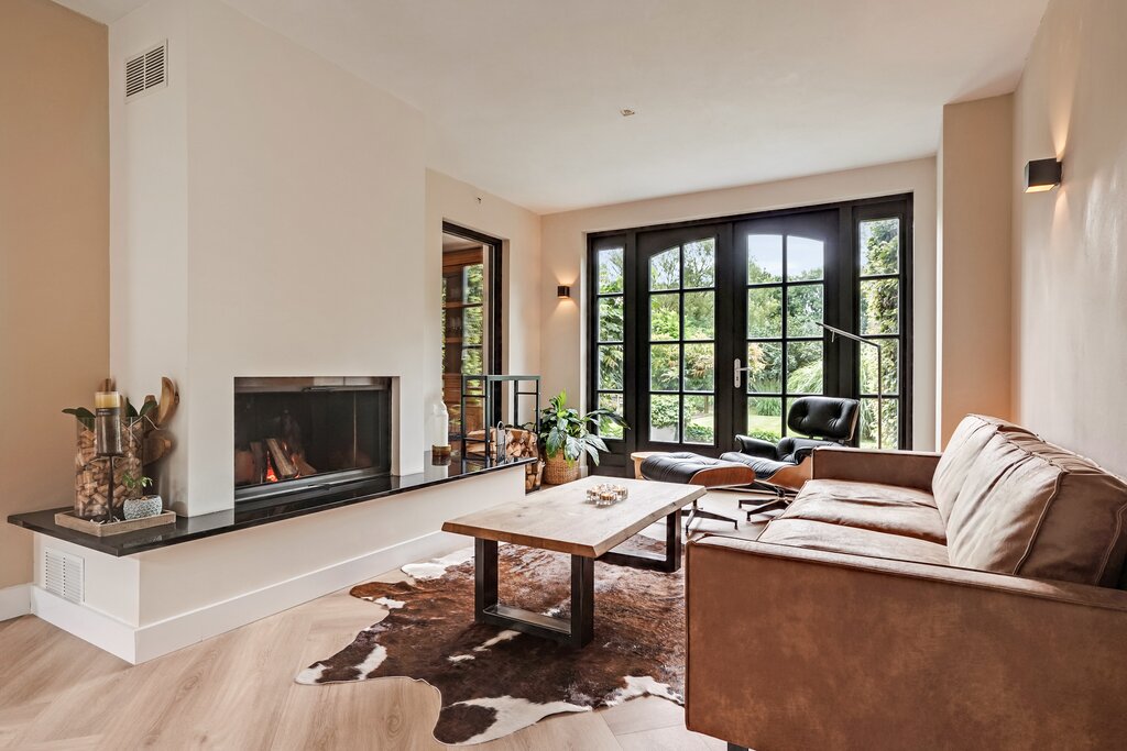 In de ruime woonkamer krijgt u een ruimtelijk en warm gevoel, maar ook het gevoel van privacy door de opsplitsing middels een mooie met glas afsluitbare haardpartij op een natuurstenen plateau. Door de vele ramen en openslaande deuren wordt deze ruimte voldoende bereikt door daglicht en is er een directe toegang en zicht tot de op het zuiden gerichte tuin.