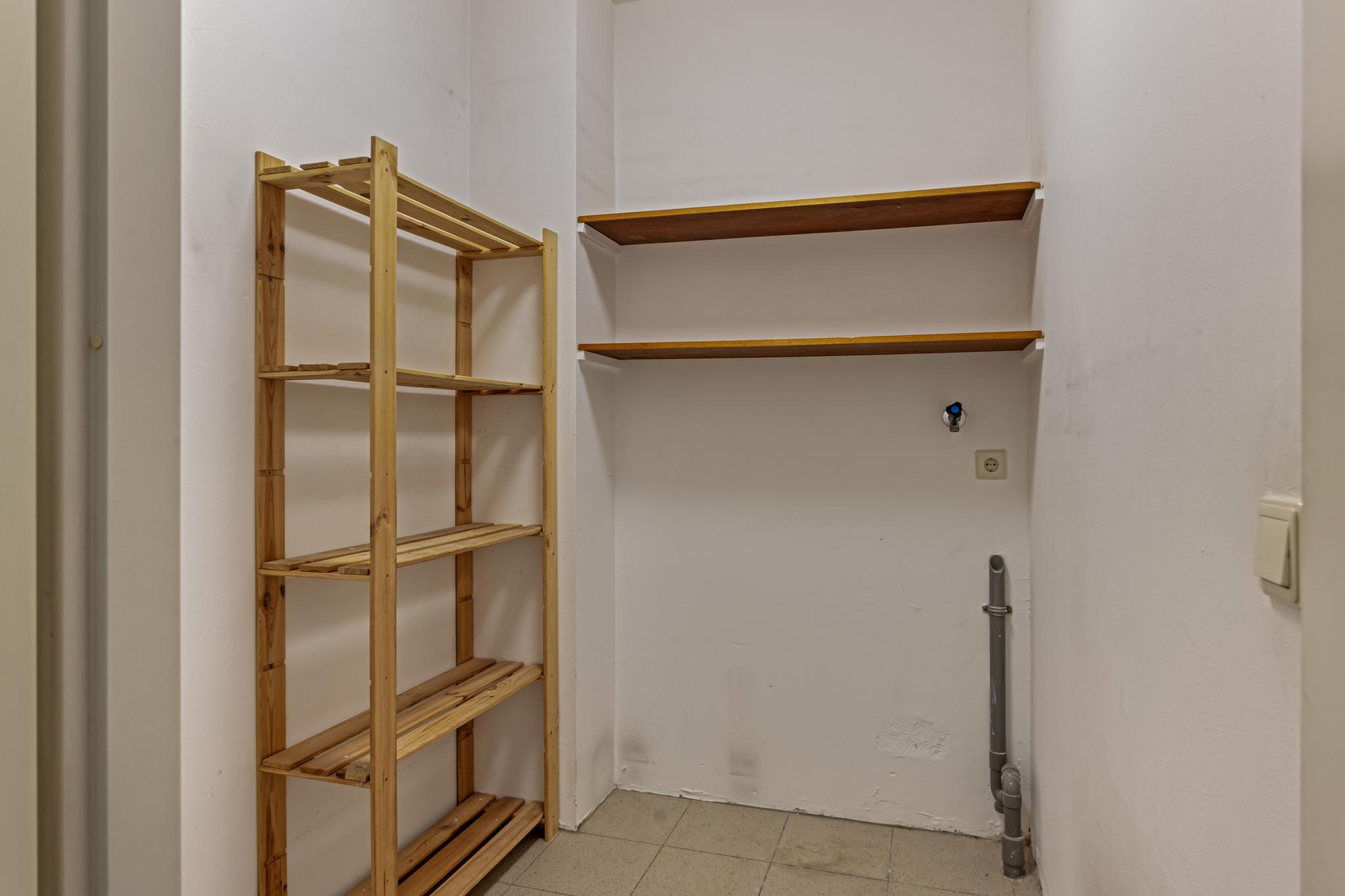 Interne berging/bijkeuken met legschappen en de aansluiting t.b.v. wasapparatuur.