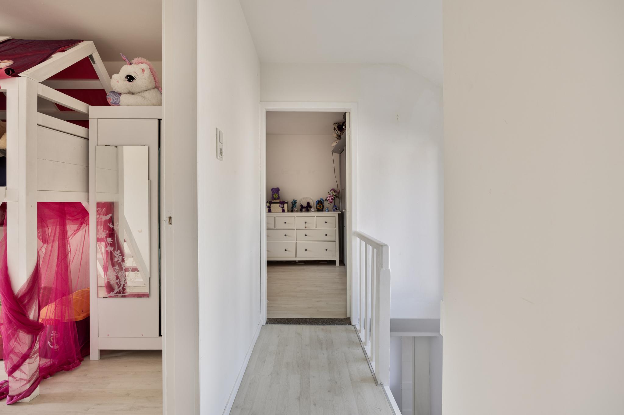 Overloop afgewerkt met een vinyl vloer en pleisterwerk wanden.