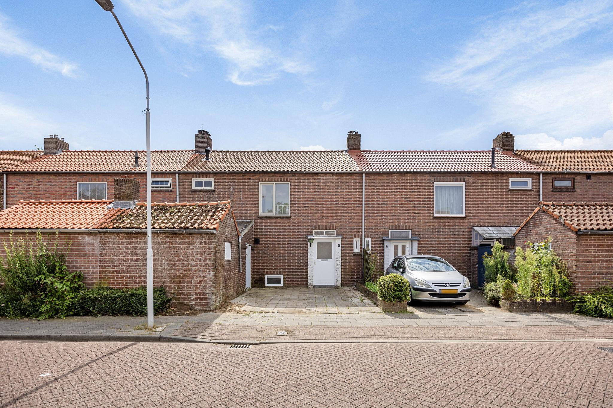 Voortuin met een verharde oprit geschikt voor het stallen van een auto.