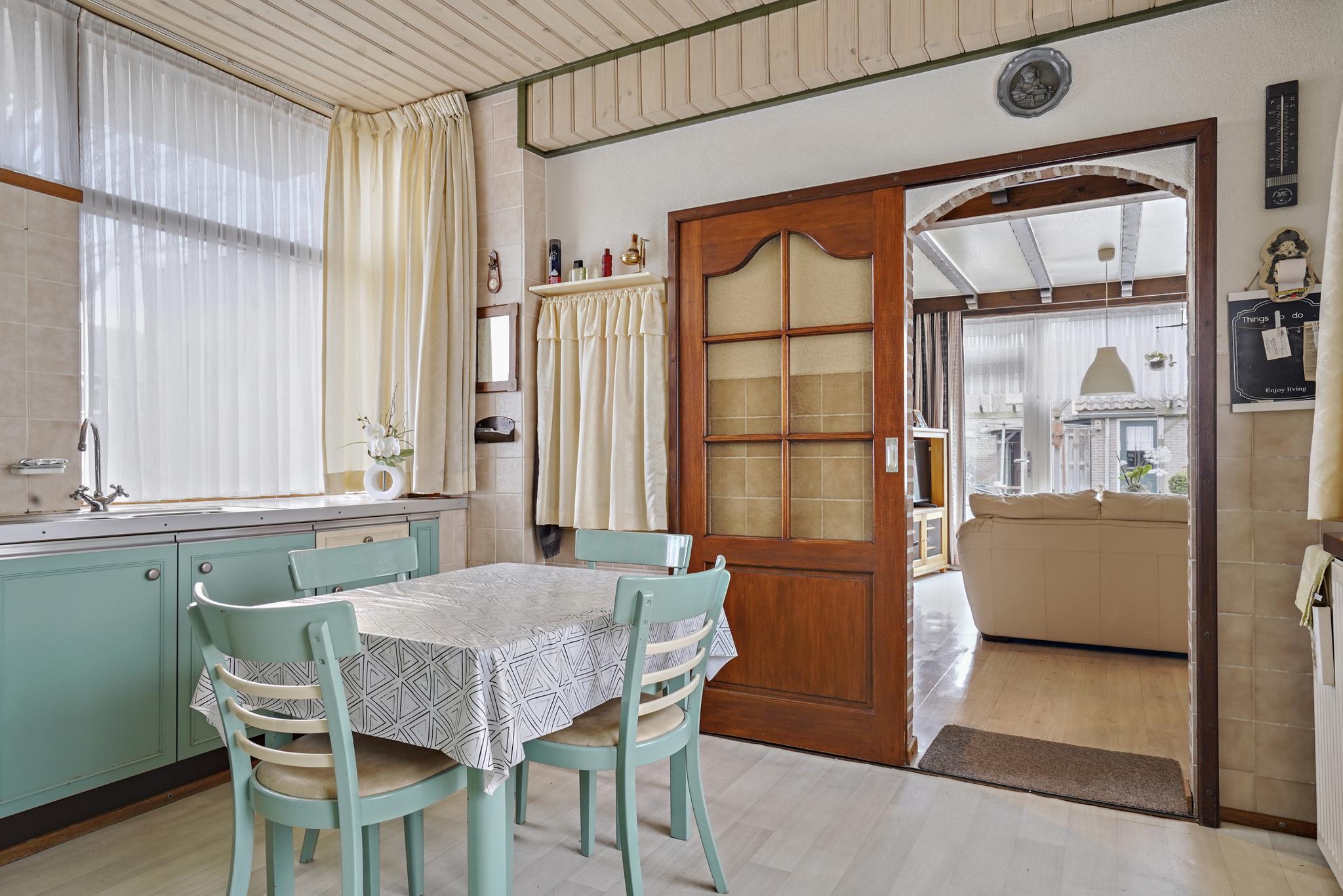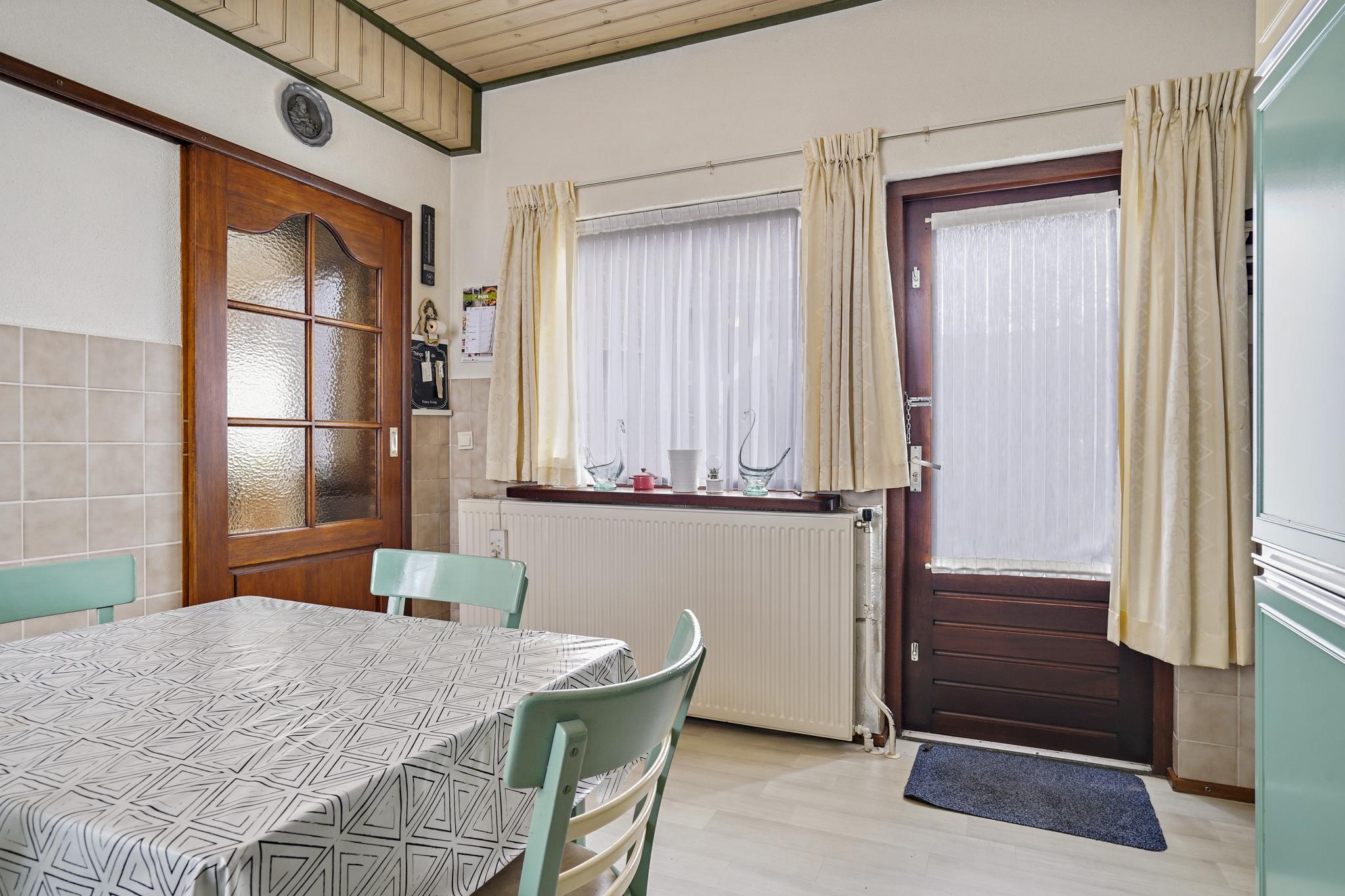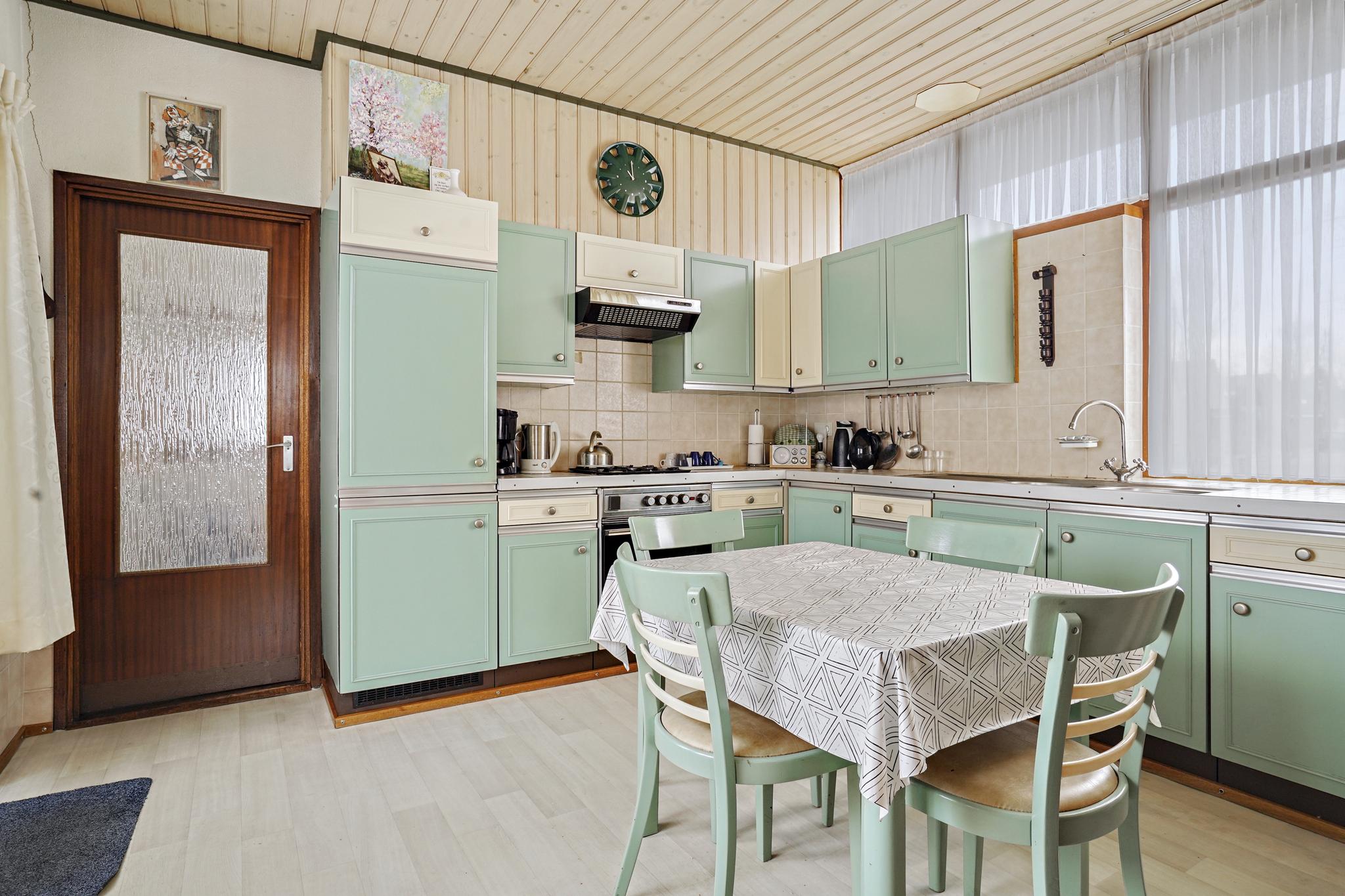 Deels betegelde bijkeuken met de aansluiting t.b.v. wasapparatuur.