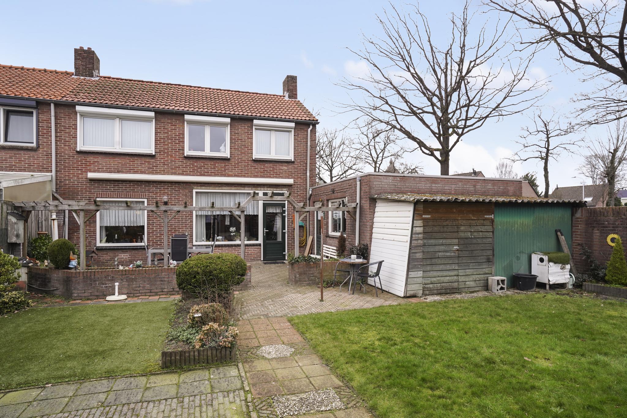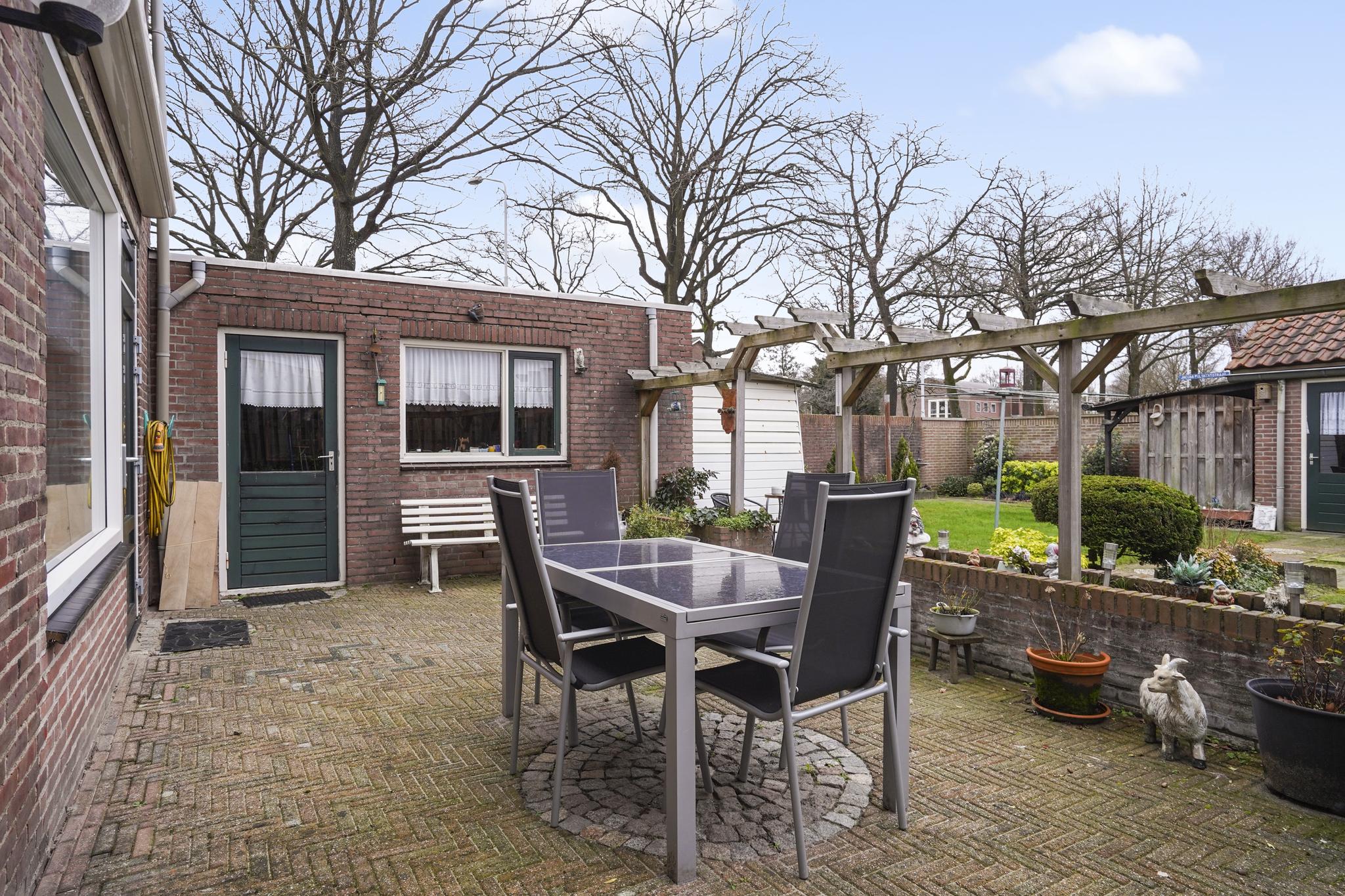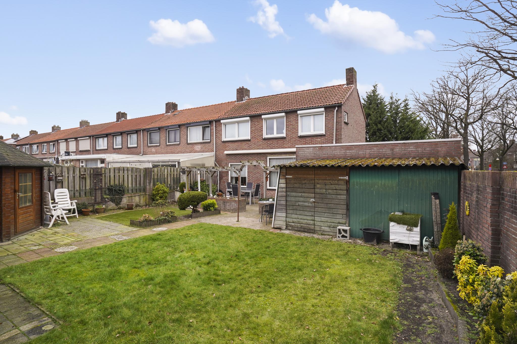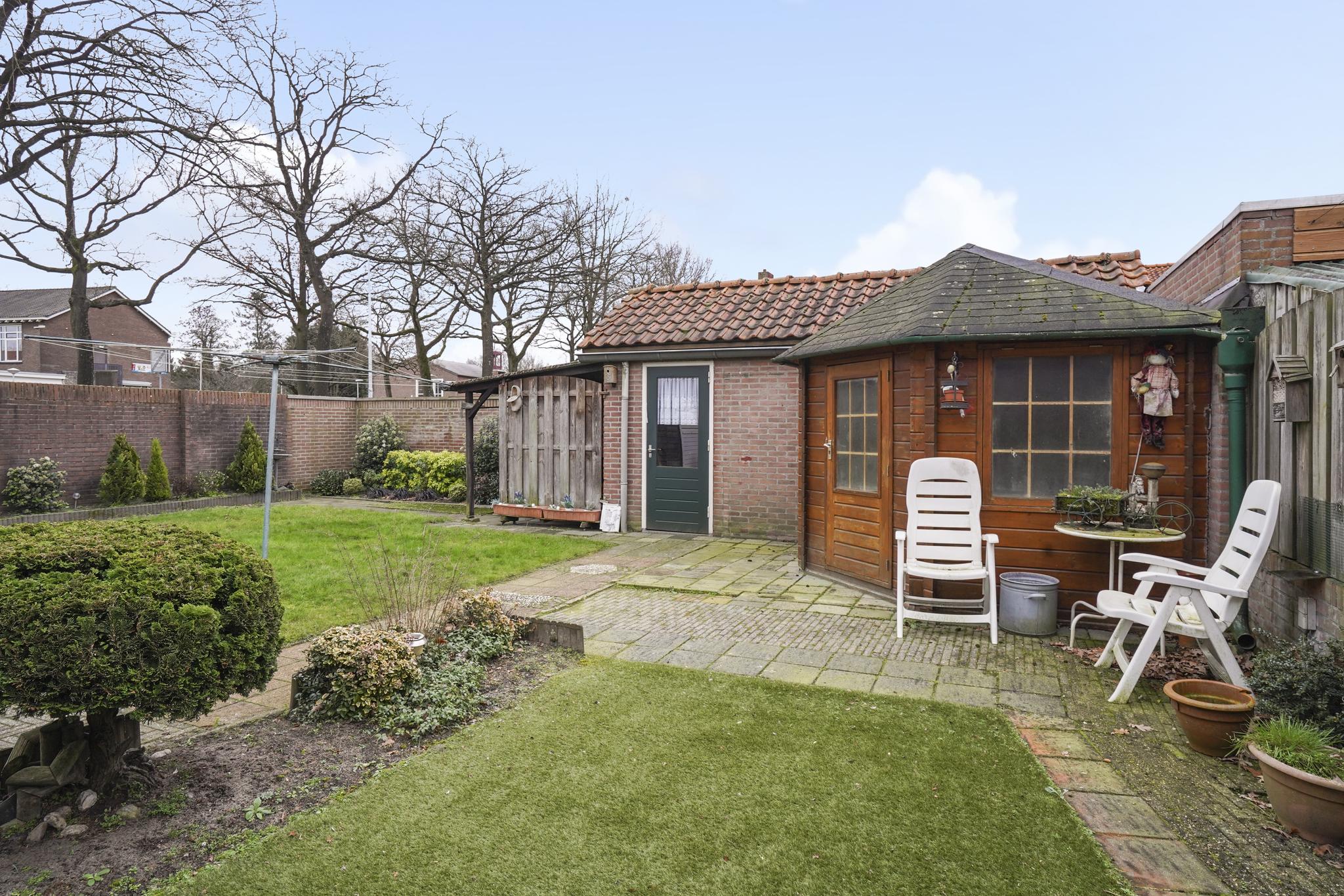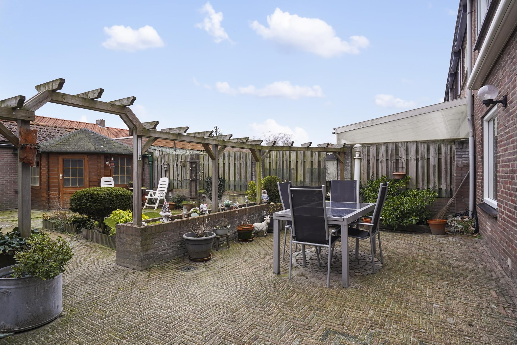 De achtertuin bezit ook een afsluitbare achterom.