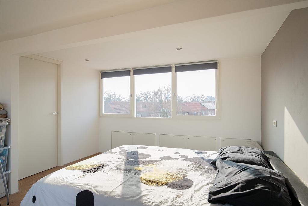 Ruime zolderslaapkamer (4e slaapkamer) met bergkasten onder de schuinte van de kap, een dubbele dakkapel aan voor en achterzijde van de kapconstructie en afgewerkt met een laminaatvloer, stucwerk wanden en een gipsplaten plafond voorzien van inbouwverlichting.
