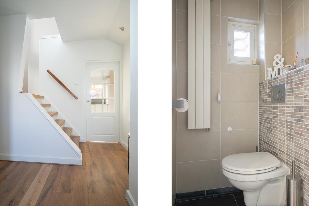 U betreedt de woning via de entree welke toegang biedt tot de hal met de meterkast en betegelde toiletruimte. Sfeervolle living afgewerkt met een massief houten delen vloer welke is doorgelegd over de gehele begane grond. Open keuken met een luxe en eigentijdse keukeninrichting voorzien van diverse inbouwapparatuur. Verdiepte kelderruimte voor de opslag van provisie. Privacy biedende achtertuin met een afsluitbare achterom, terrasoverkapping en tevens toegang tot de geïsoleerde berging. Op de 1e verdieping bevinden zich de 3 slaapkamers, overloop en een complete badkamer. Middels vaste trap te bereiken 2e etage met een voorzolder en toegang tot de 4e slaapkamer met dakkapel aan zowel de voor als achterzijde van de kapconstructie.