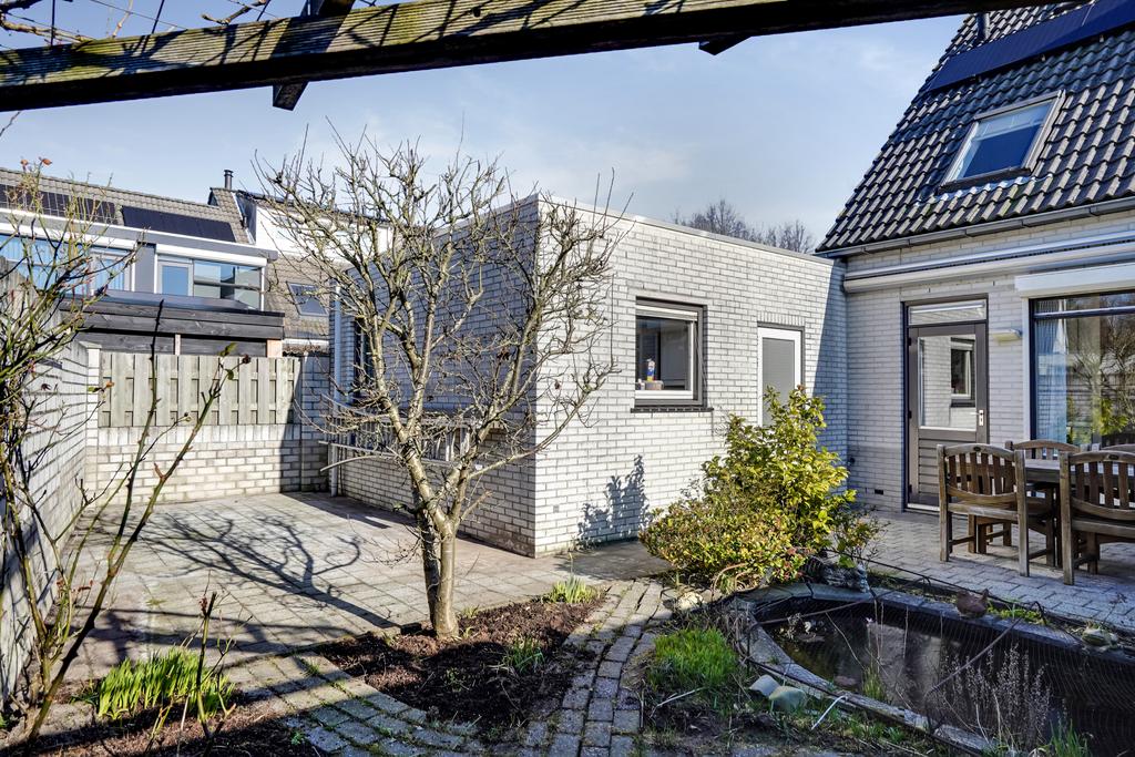 De entree van de woning biedt toegang tot de hal met de meterkast en toiletruimte. Ruime living in L-vorm afgewerkt met een natuurstenen tegelvloer. Open keuken met een praktische keukeninrichting in hoekopstelling. Royale en geheel in spouwmuur uitgevoerde garage. Achtertuin is op zonzijde gelegen (zuid/westen). Op de 1e verdieping bevinden zich de 3 slaapkamers, overloop en badkamer. Middels vaste trap te bereiken zolderetage met de mogelijkheid tot het realiseren van een 4e slaapkamer.