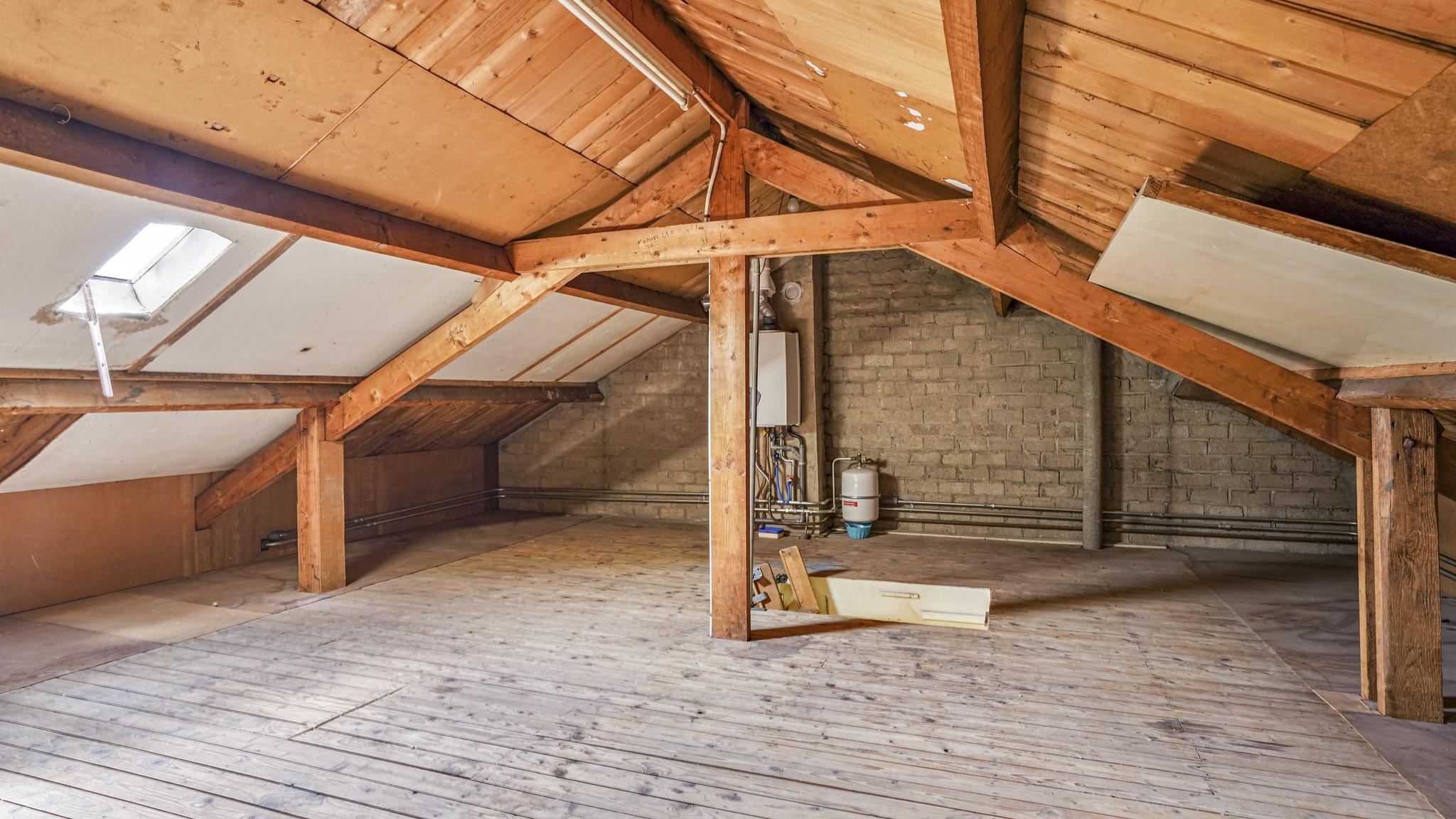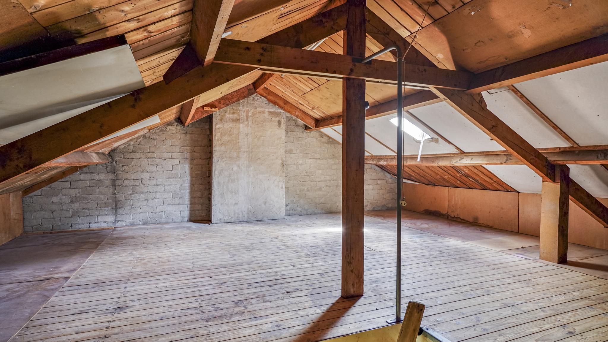 Ruime bergzolder met de opstelling van de HR ketel van het merk Atag (huur).