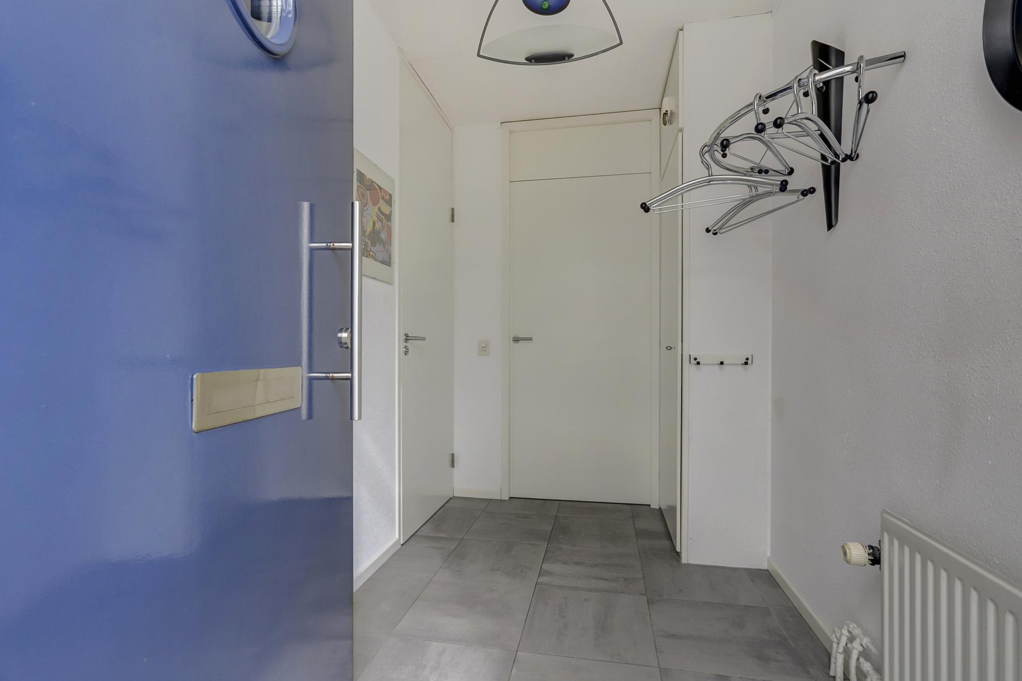 Hal afgewerkt met een tegelvloer, spuitwerk wanden en een -plafond.