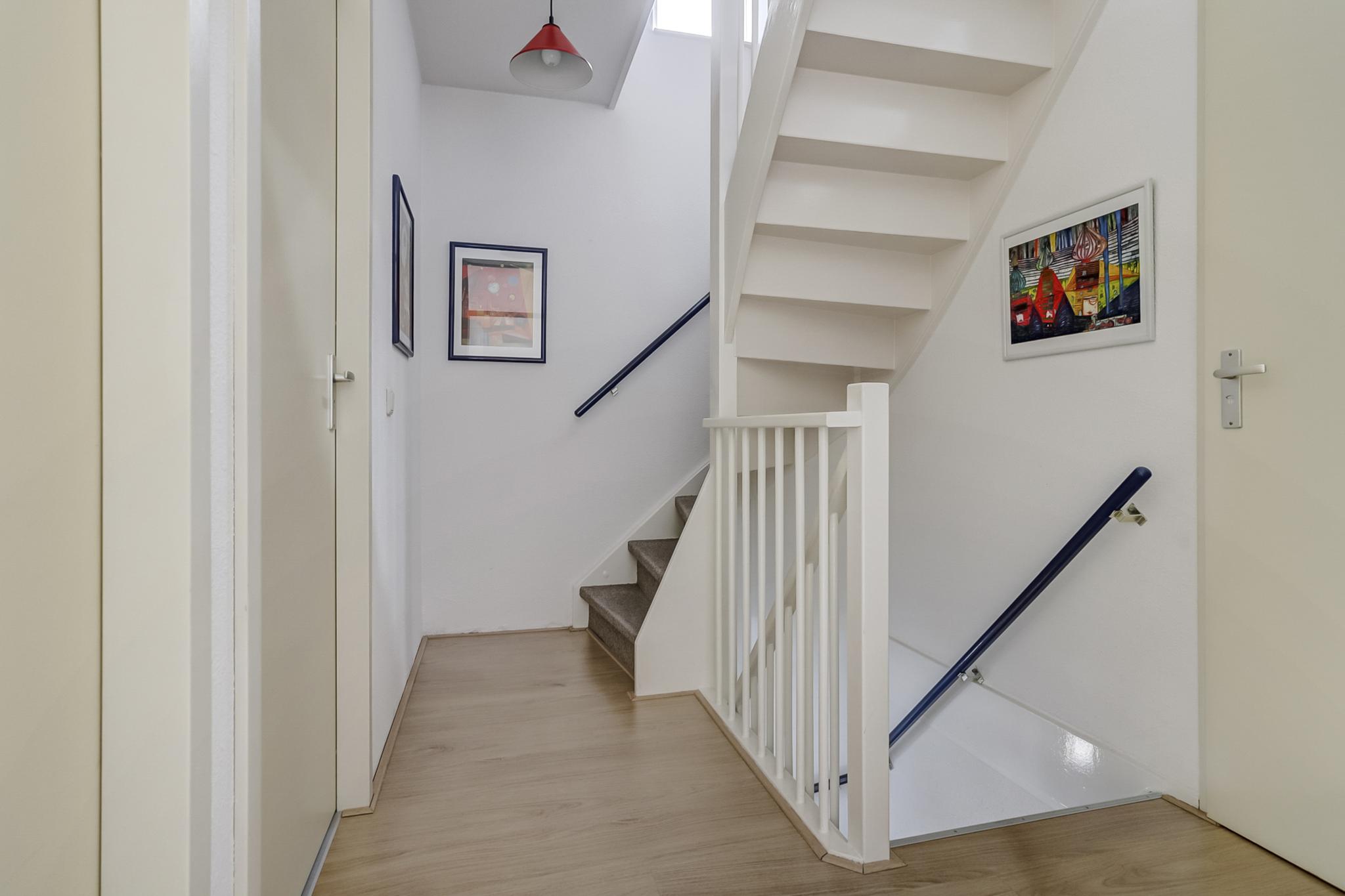 Via vaste trap op overloop te bereiken.