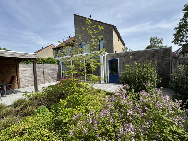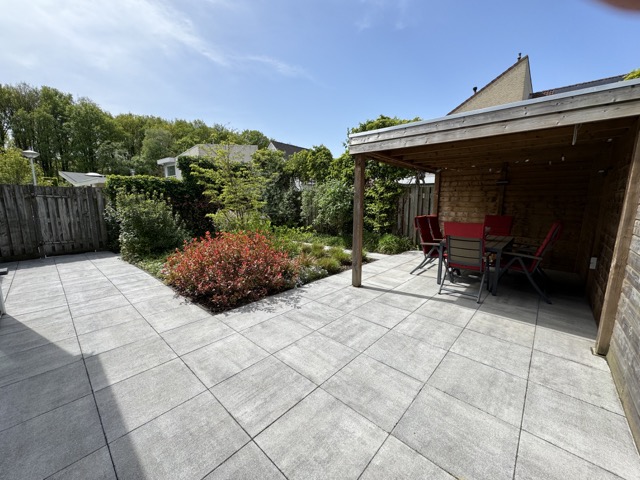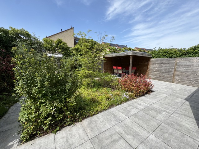 De fraai aangelegde achtertuin heeft een afmeting van 8.00 meter diep en 10.00 meter breed.