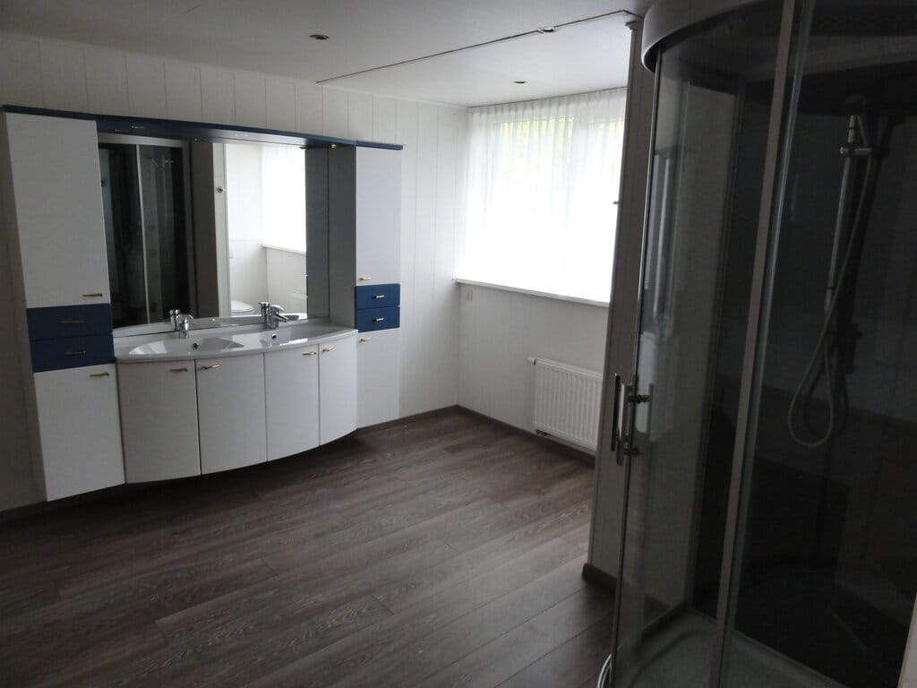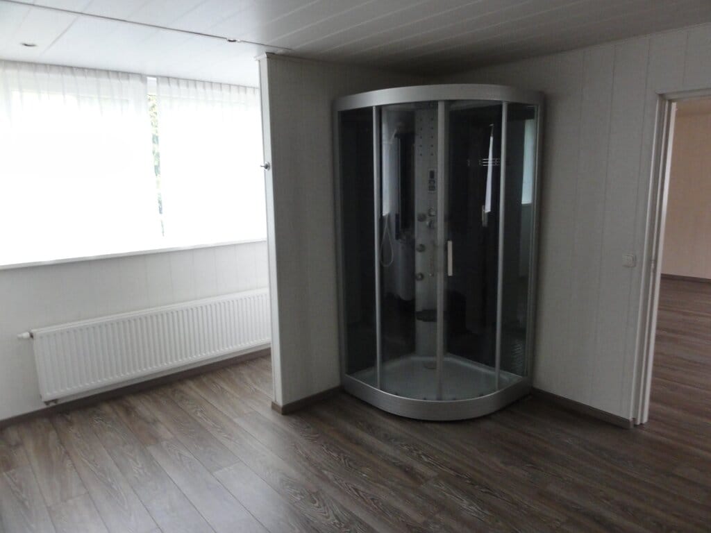 De kamer is afgewerkt met een laminaatvloer, systeem wanden en plafond met inbouwverlichting.