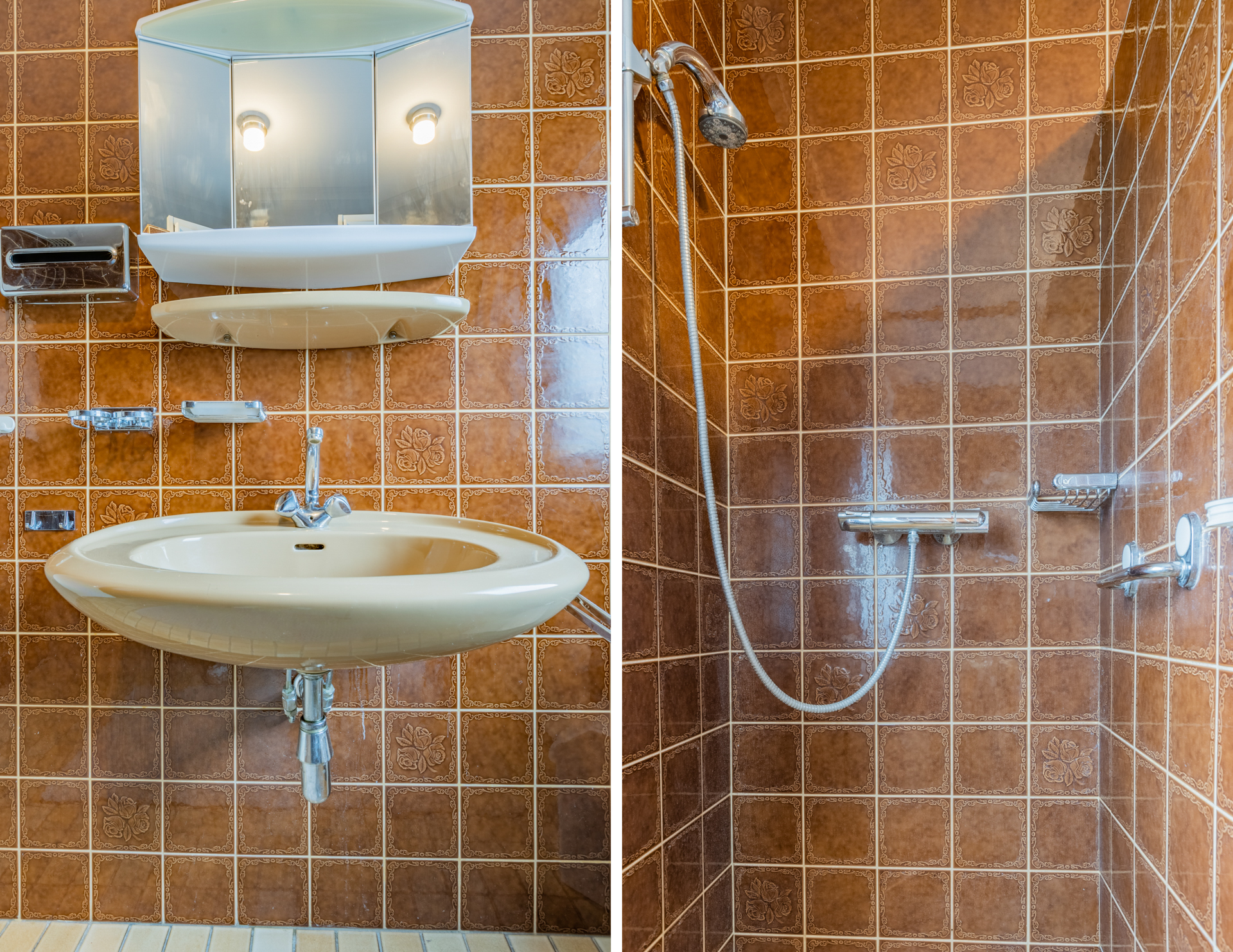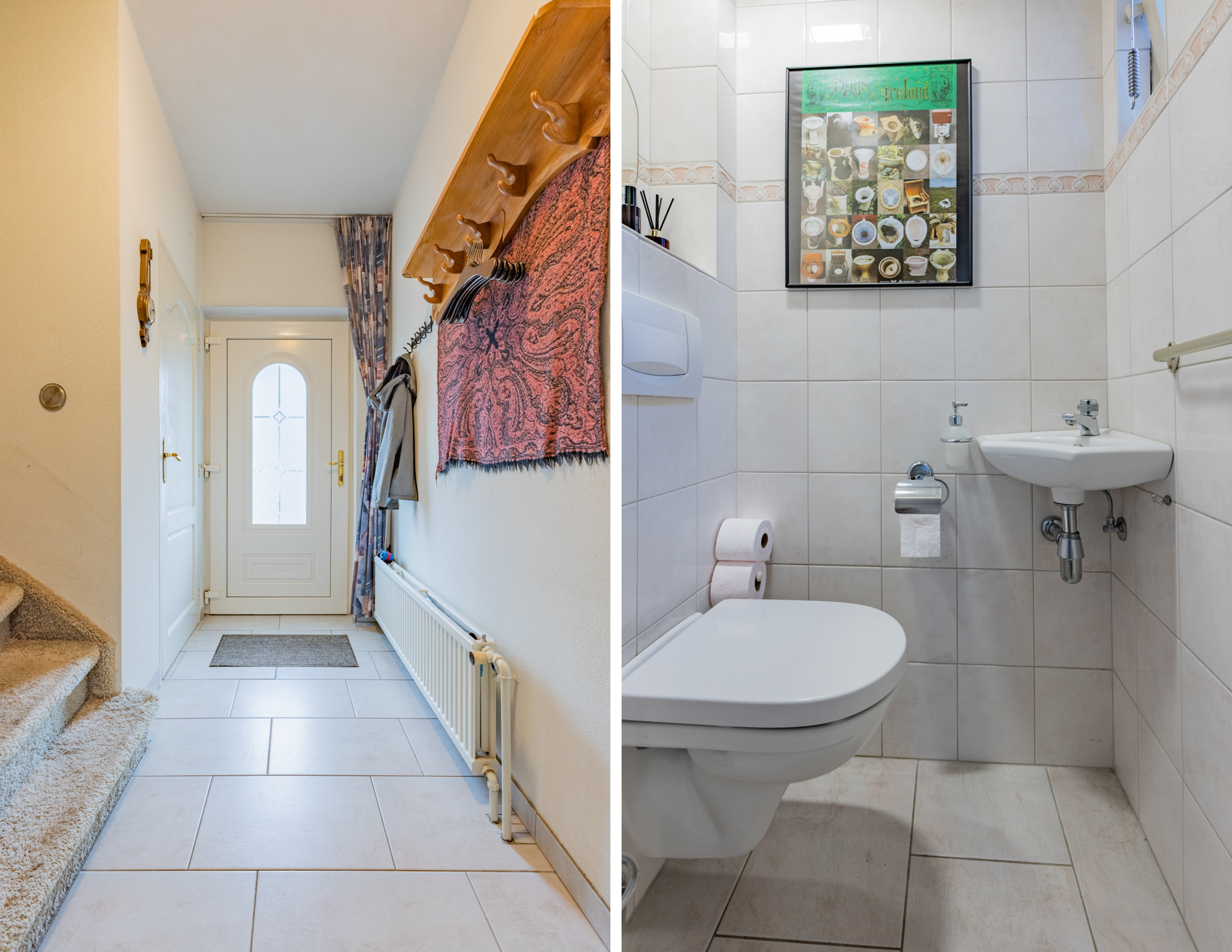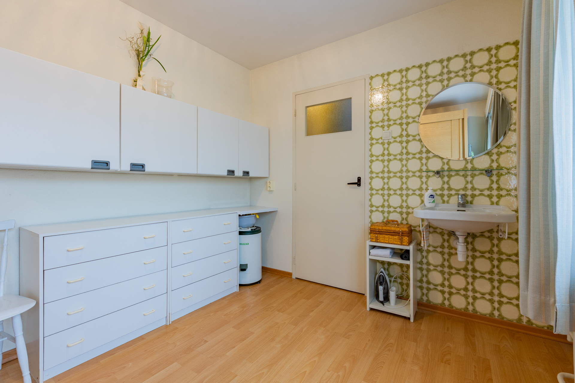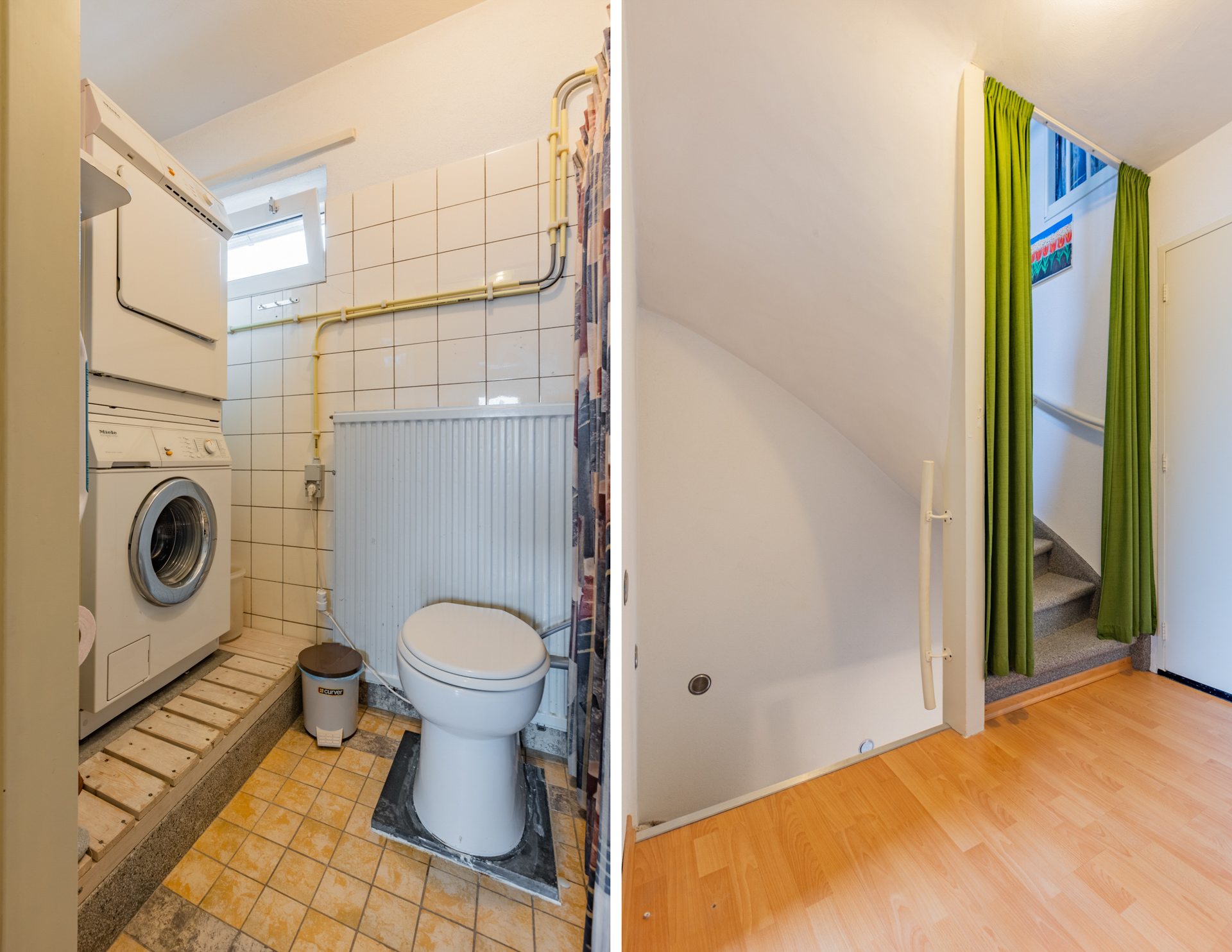 Betegelde wasruimte met het 2e closet en de aansluiting t.b.v. wasapparatuur.