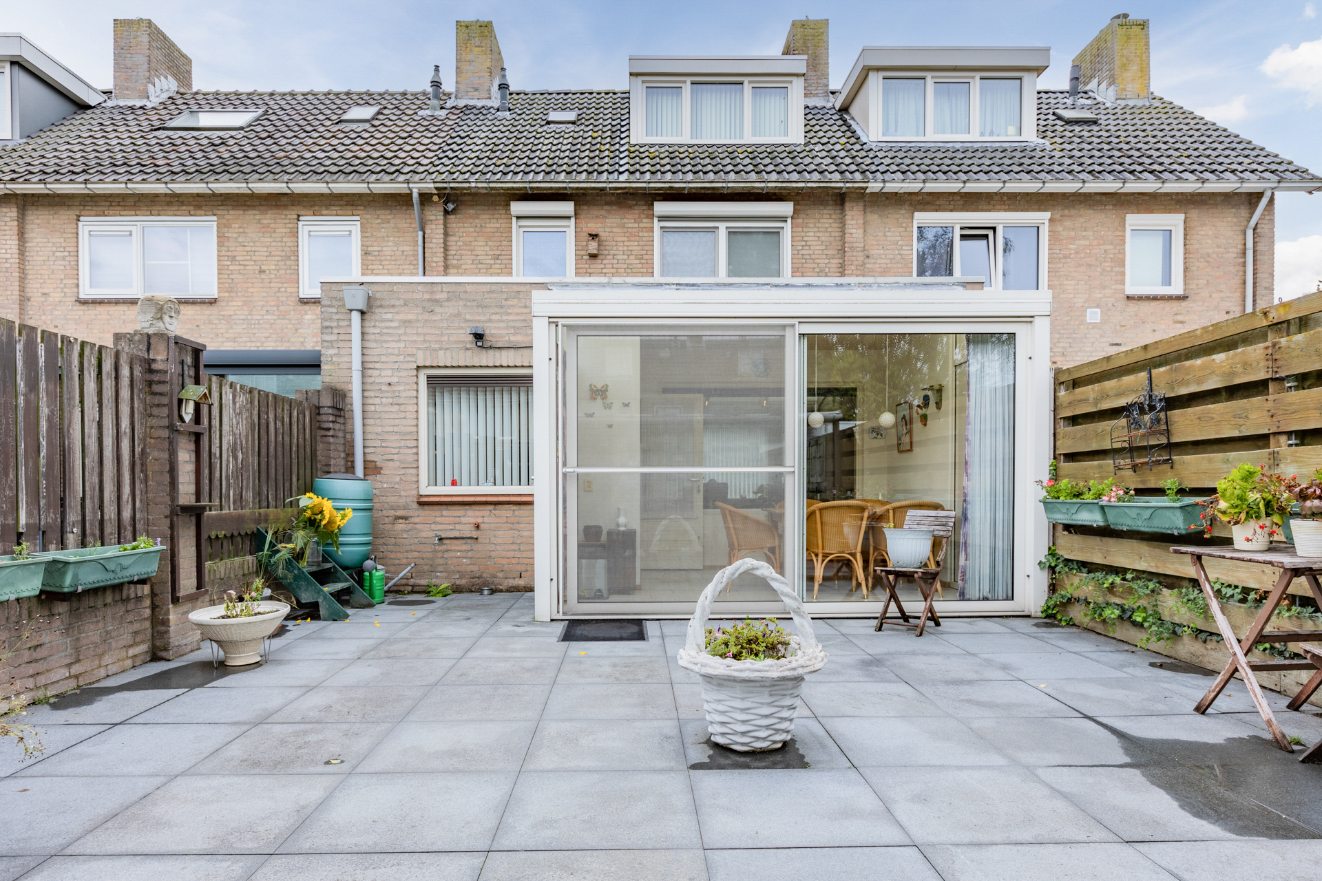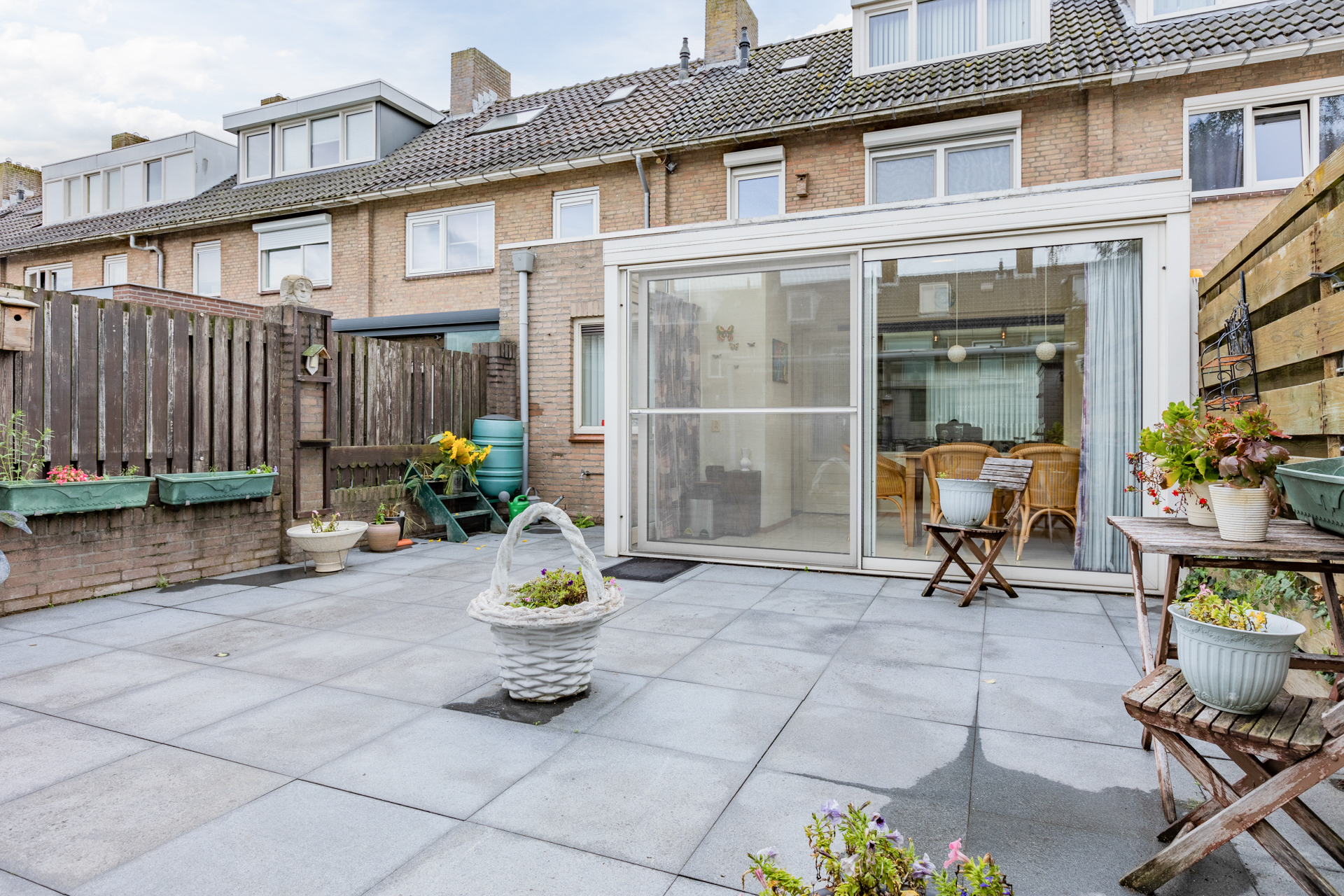 Deze uitgebouwde tussenwoning met berging en mogelijkheid tot het aankopen van een losse garagebox is gelegen in de rustige woonwijk "De Hoge Akker" met een goed gekozen indeling: Overdekte entree naar de hal met de toiletruimte en verdiepte trapkast. Uitgebouwde living afgewerkt met een tegelvloer voorzien van vloerverwarming. Open en ruime keuken met een praktische keukeninrichting voorzien van diverse inbouwapparatuur. Gezellige tuinkamer met een schuifpui naar de achtertuin met een separate berging en achterom. Op de 1e verdieping bevinden zich de 2 slaapkamers, betegelde wasruimte met 2e toilet en een ruime badkamer voorzien van een ligbad, separate douche en wastafel. Middels vaste trap te bereiken 2e verdieping met een voorzolder en toegang tot de 3e slaapkamer met een dubbele dakkapel aan voor- en achterzijde van de kapconstructie.