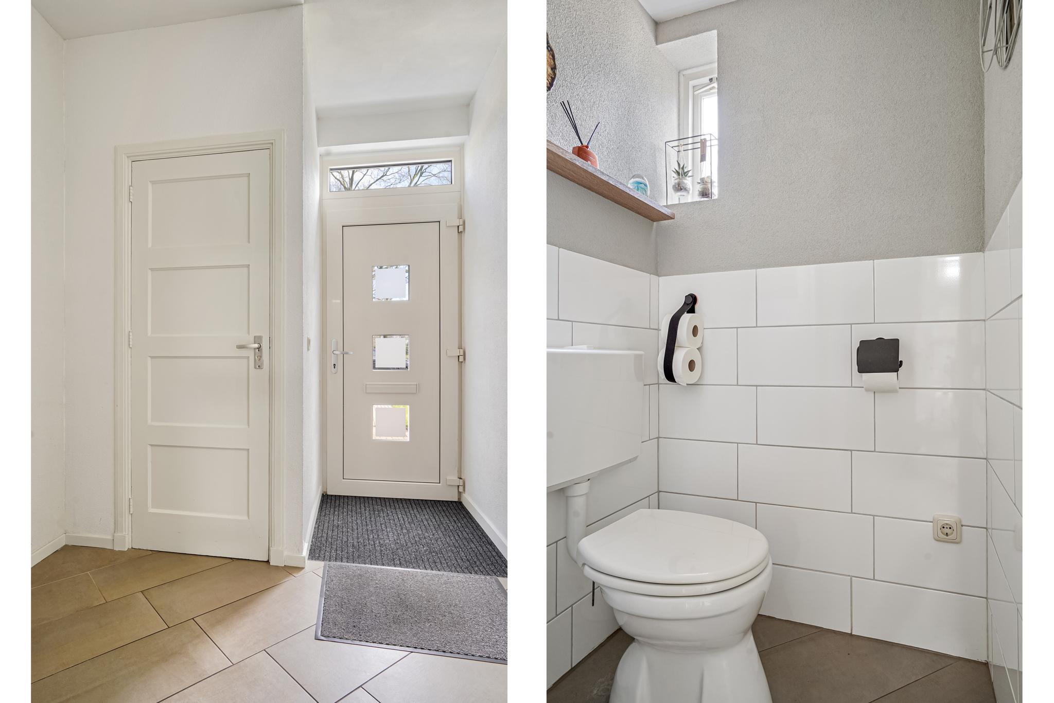 Entree met een kunststof voordeur voorzien van veiligheidssloten.