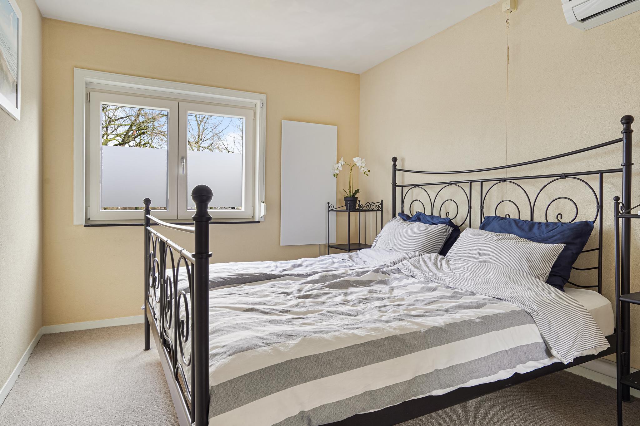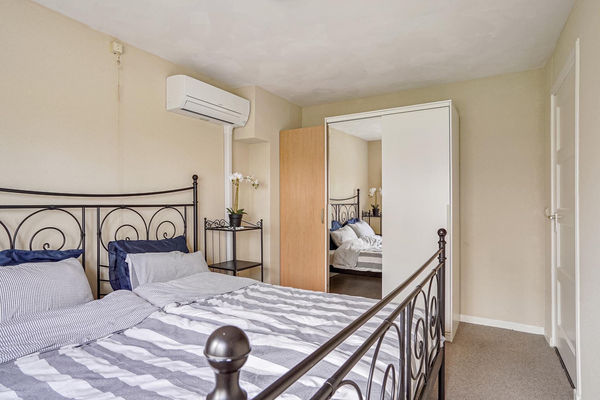 Slaapkamer 1 aan achterzijde is afgewerkt met vloerbedekking, stucwerk wanden en een fijn schuurwerk plafond.