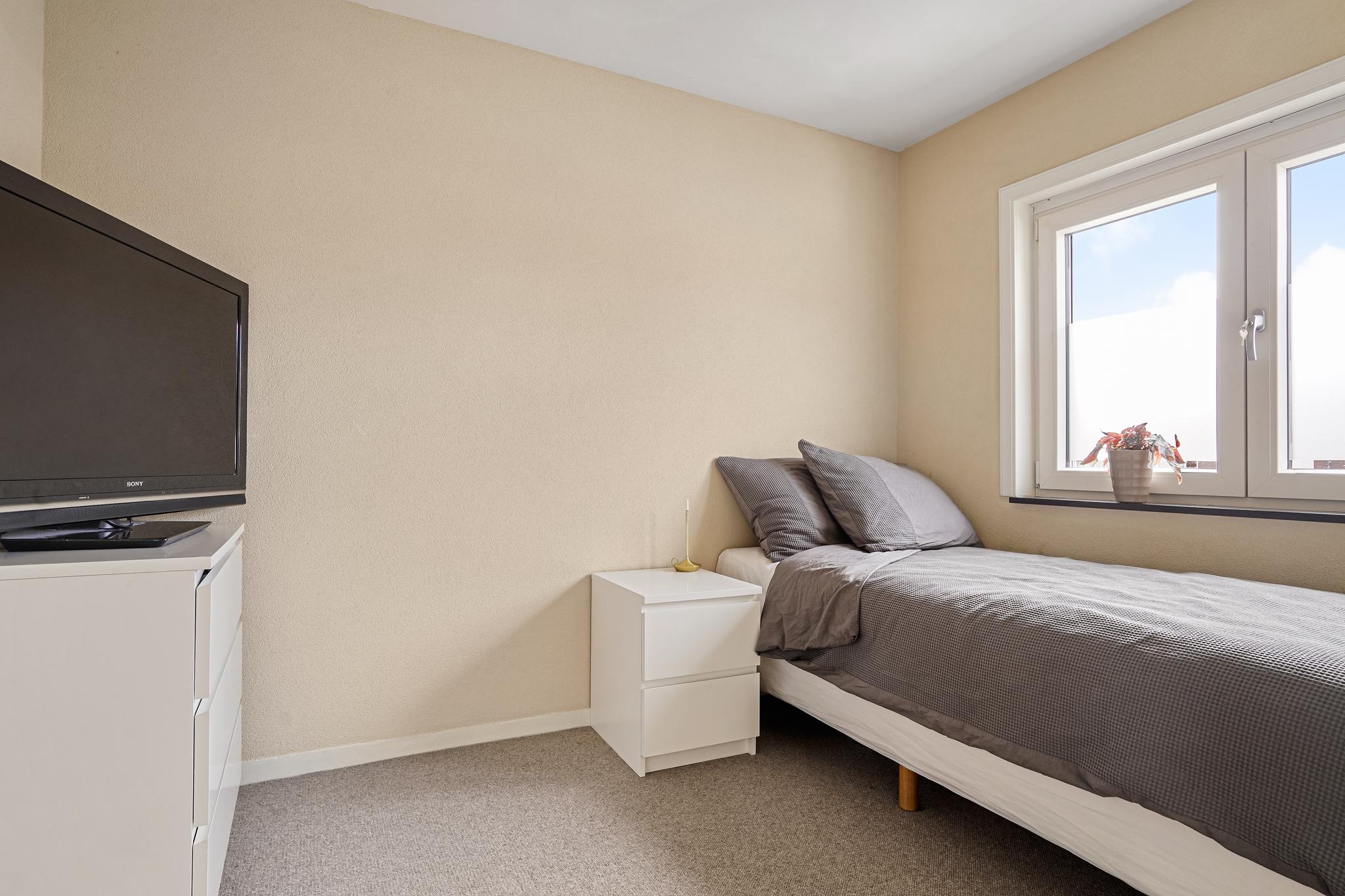 Ruime zolderetage voorzien van nieuwe geïsoleerde dakplaten. Deze ruimte is via een eenvoudige ingreep te realiseren tot bijvoorbeeld een extra slaapkamer gezien de nok hoogte voldoende hoogte heeft.