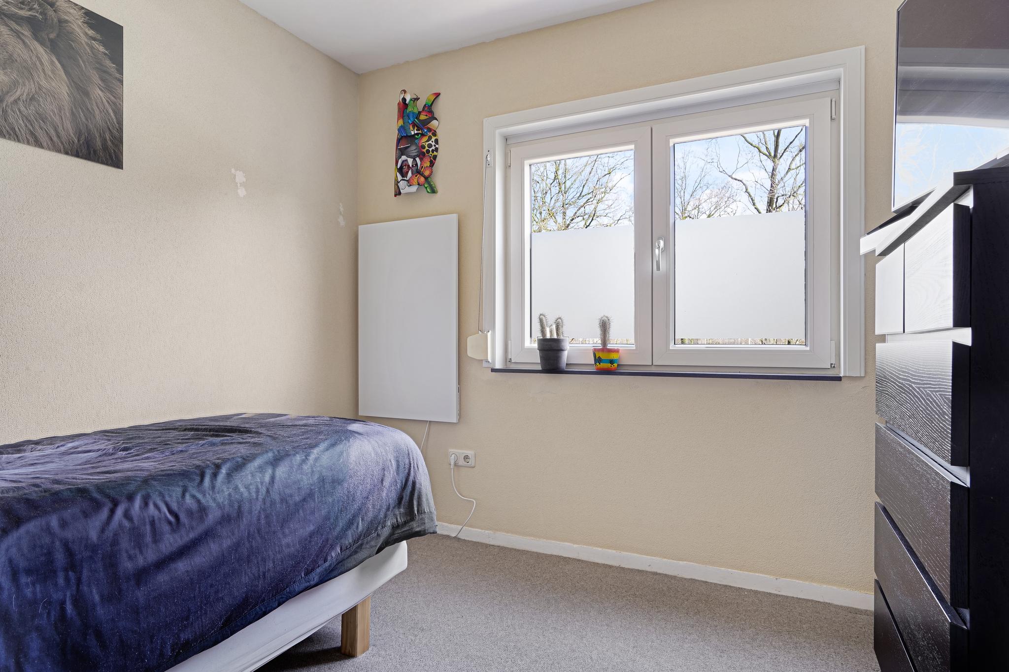Slaapkamer 3 aan achterzijde is afgewerkt met vloerbedekking, stucwerk wanden en een fijn schuurwerk plafond.