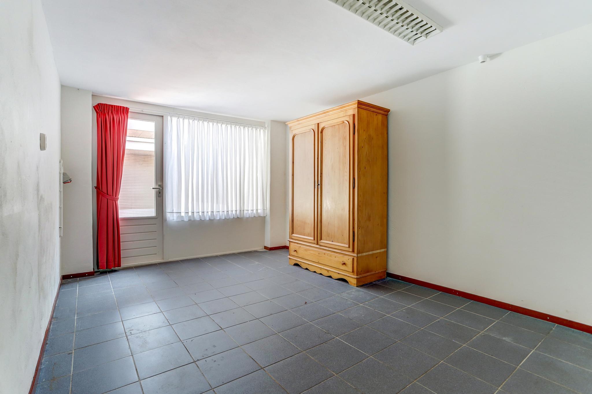 Kantoor/werkkamer met een tegelvloer en stucwerk wanden.