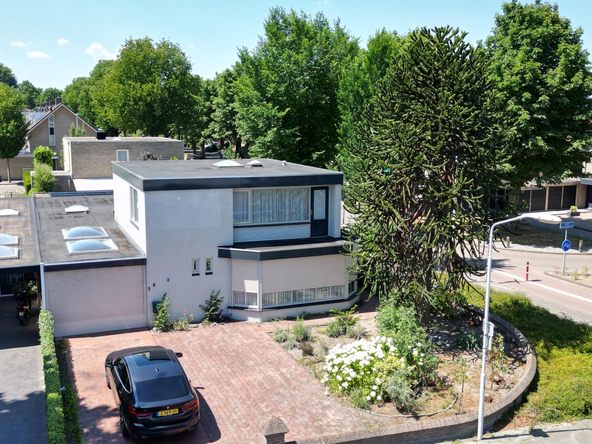 Op de begane grond is de woning ingedeeld met een royale living met openslaande tuindeuren naar het terras, gezellige woonkeuken met een praktische keukeninrichting voorzien van inbouwapparatuur, bijkeuken, werk/speelkamer, grote slaapkamer met de inloop naar de complete badkamer, ontvangsthal, toiletruimte en een inpandige garage. Op de 1e verdieping bevinden zich de 4 slaapkamers, 2e badkamer en overloop met inloopkast.