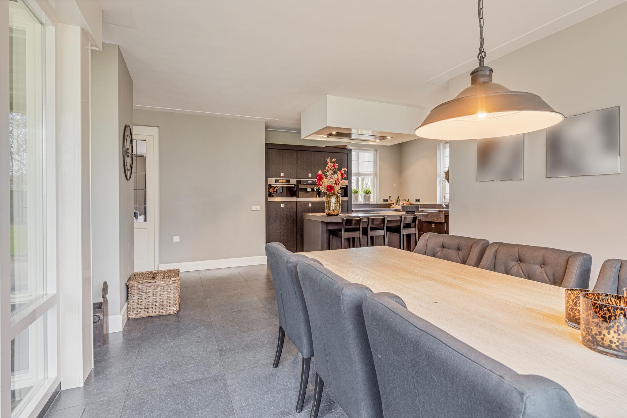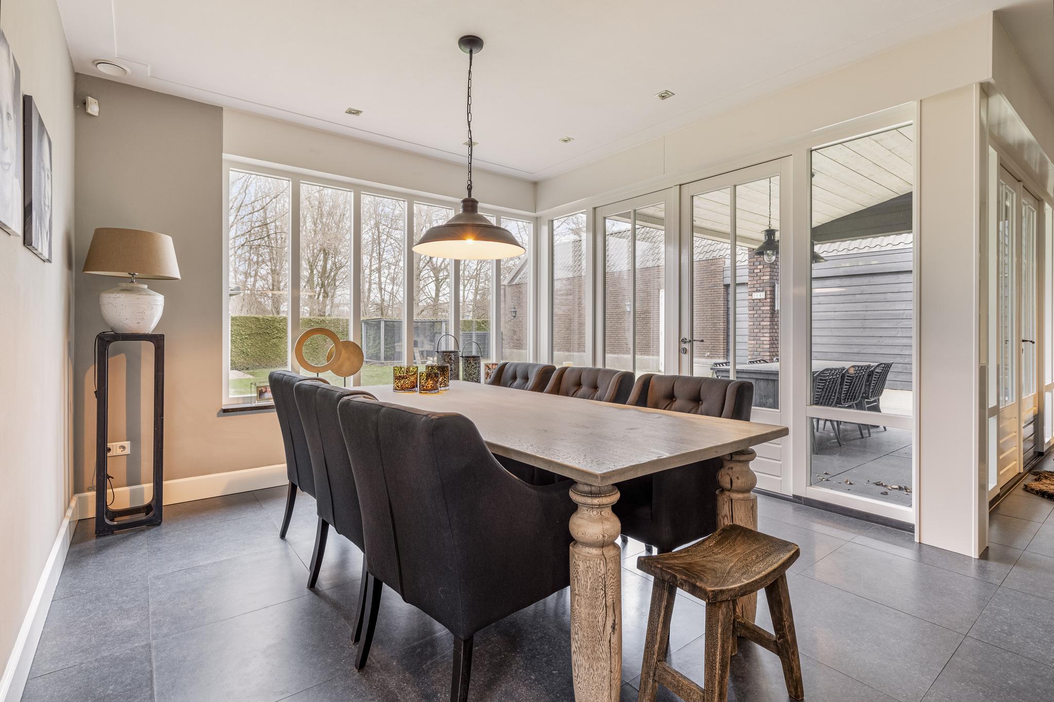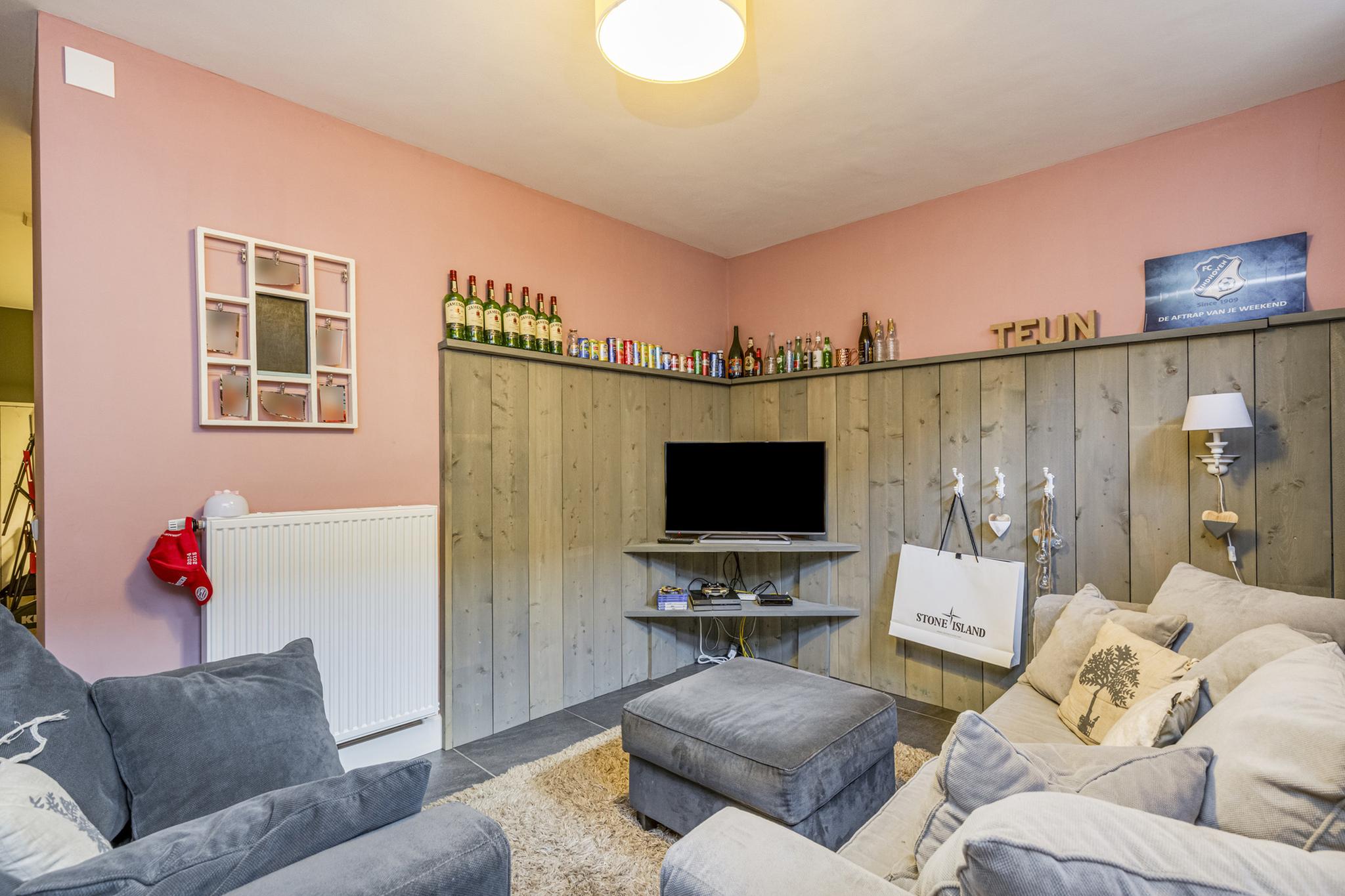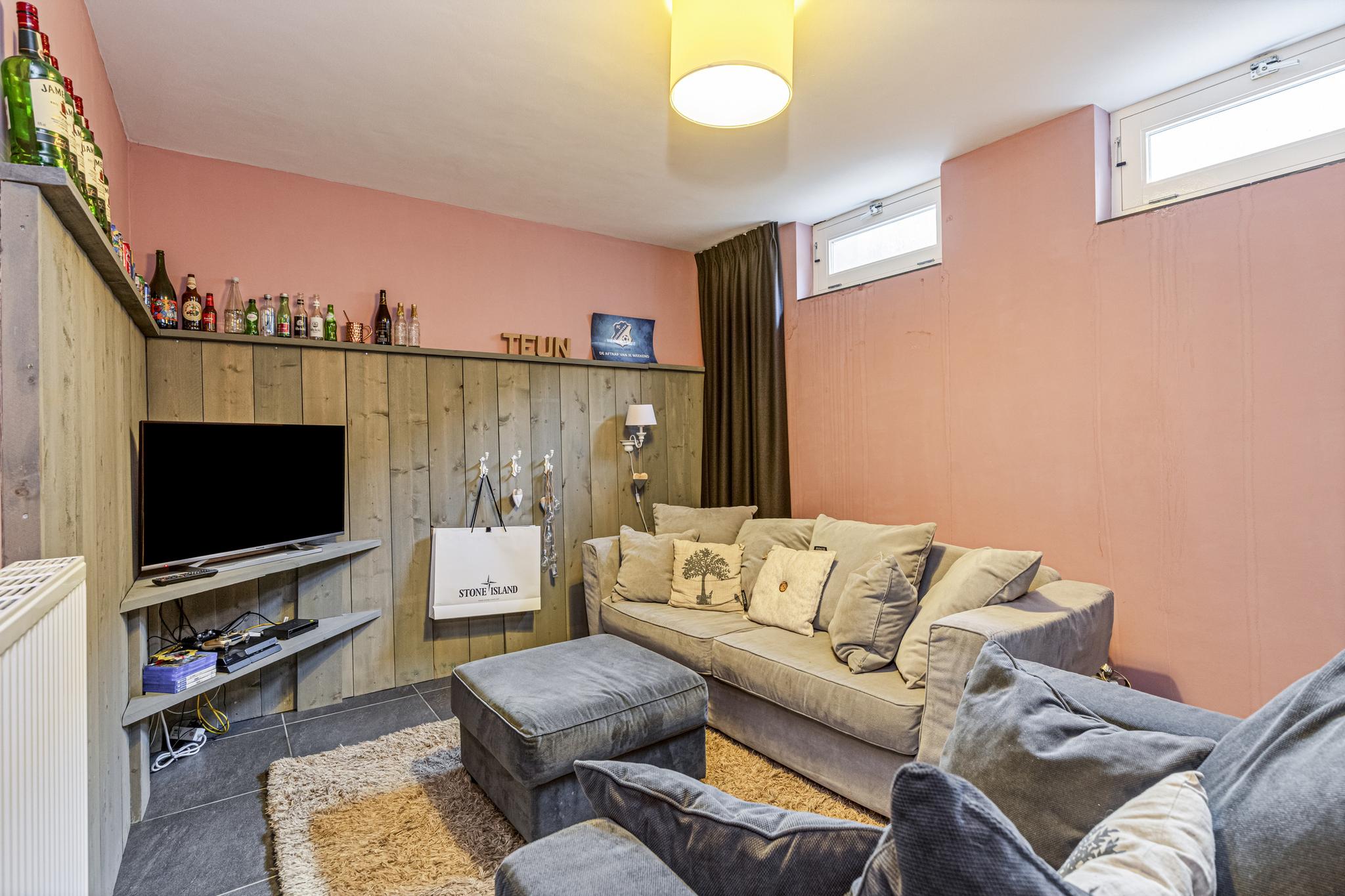 In open verbinding met de woonkeuken bevind zich de extra speelruimte met openslaande tuindeuren naar de overdekt terras en ingericht met een maatkast.