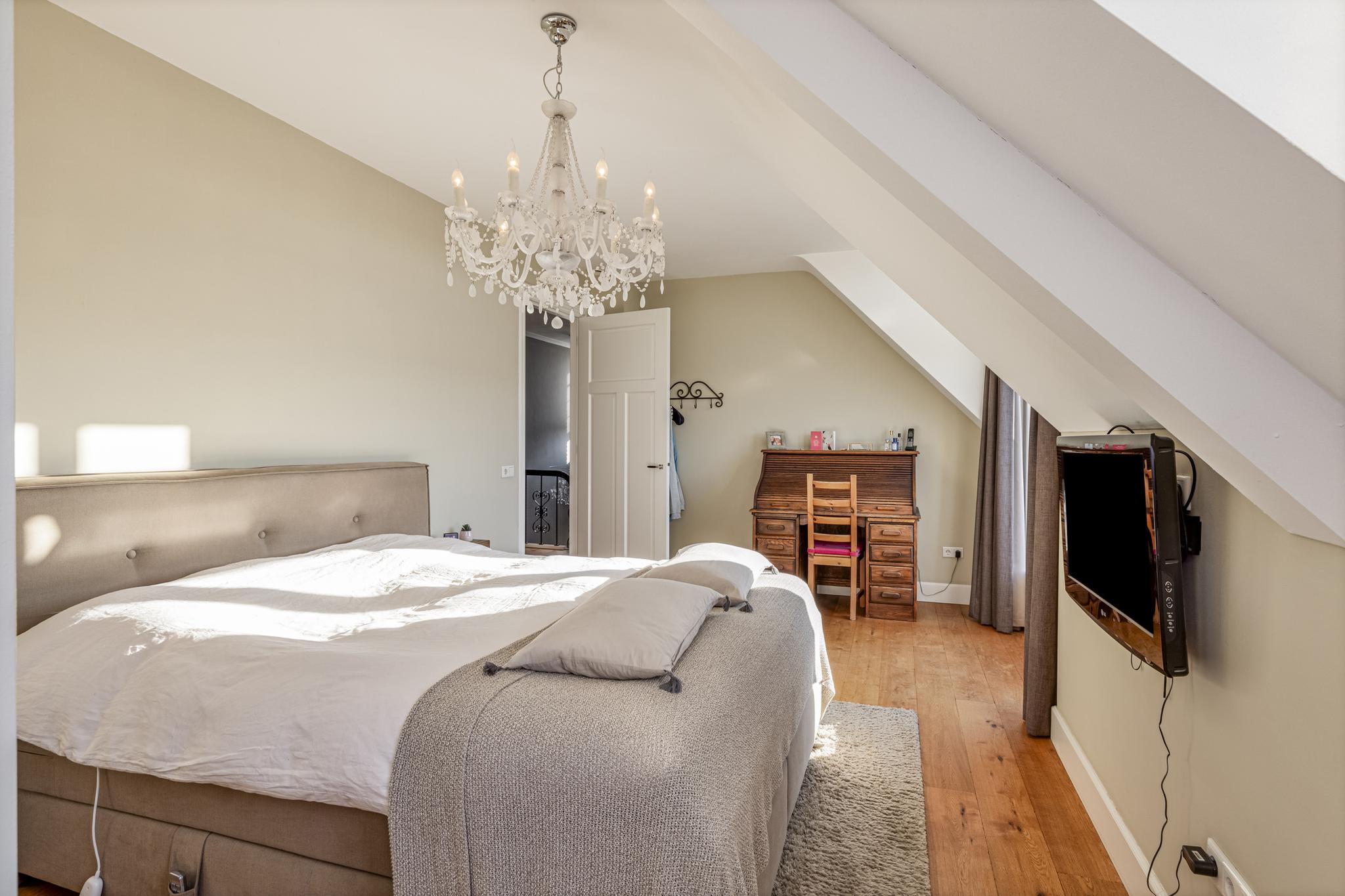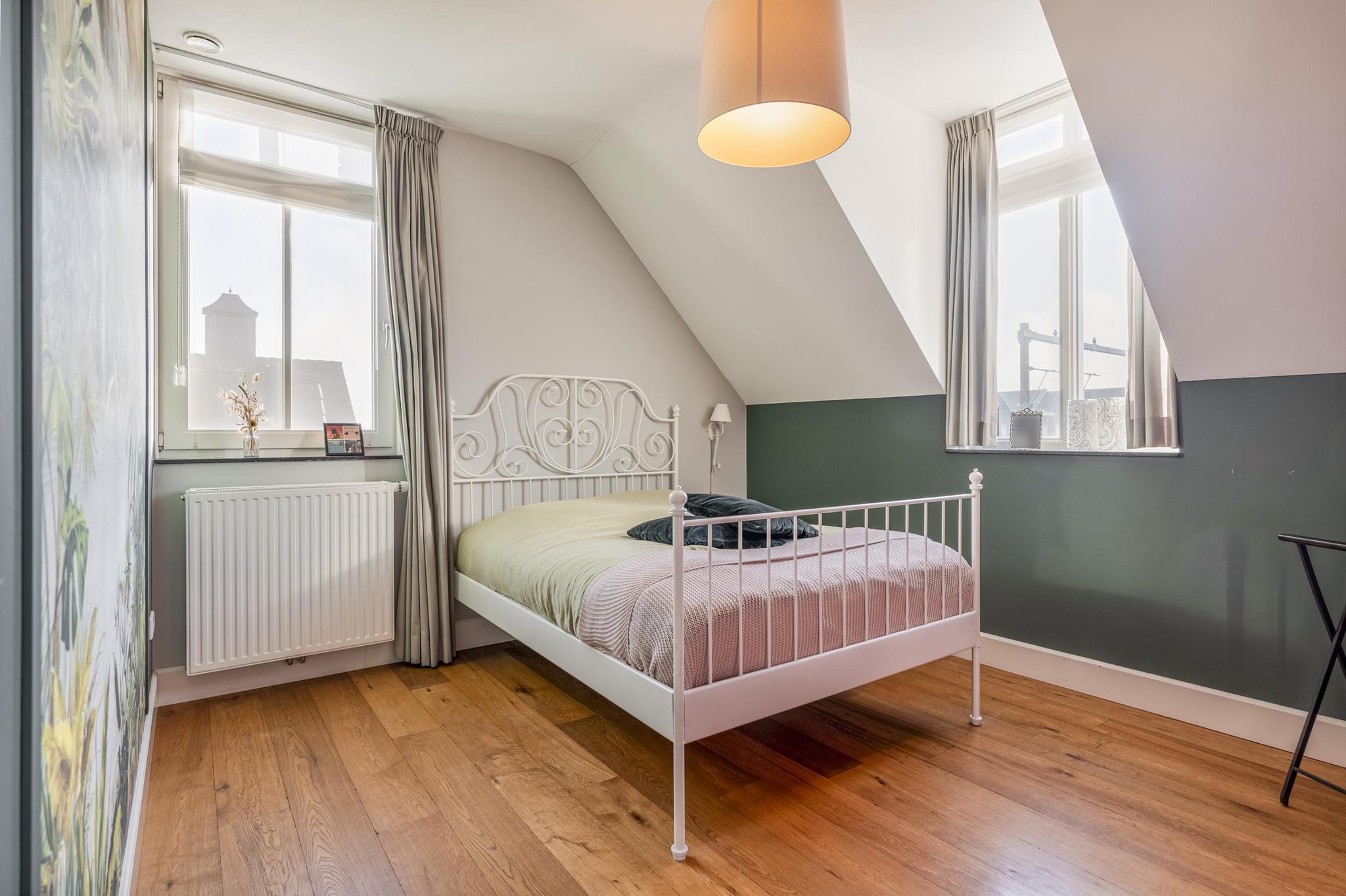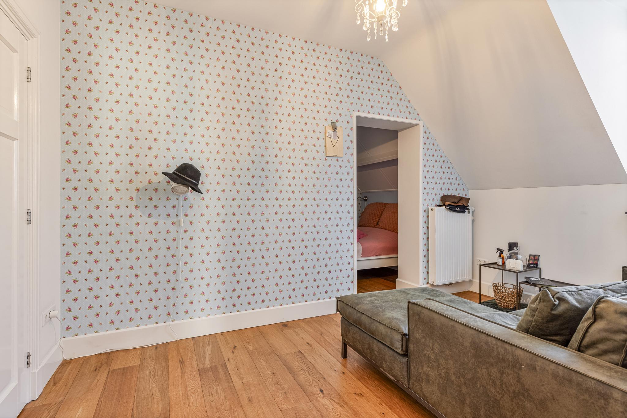 Deze kamer is afgewerkt met een houten delen vloer, behangen deels stucwerk wanden en een fijn schuurwerk plafond.