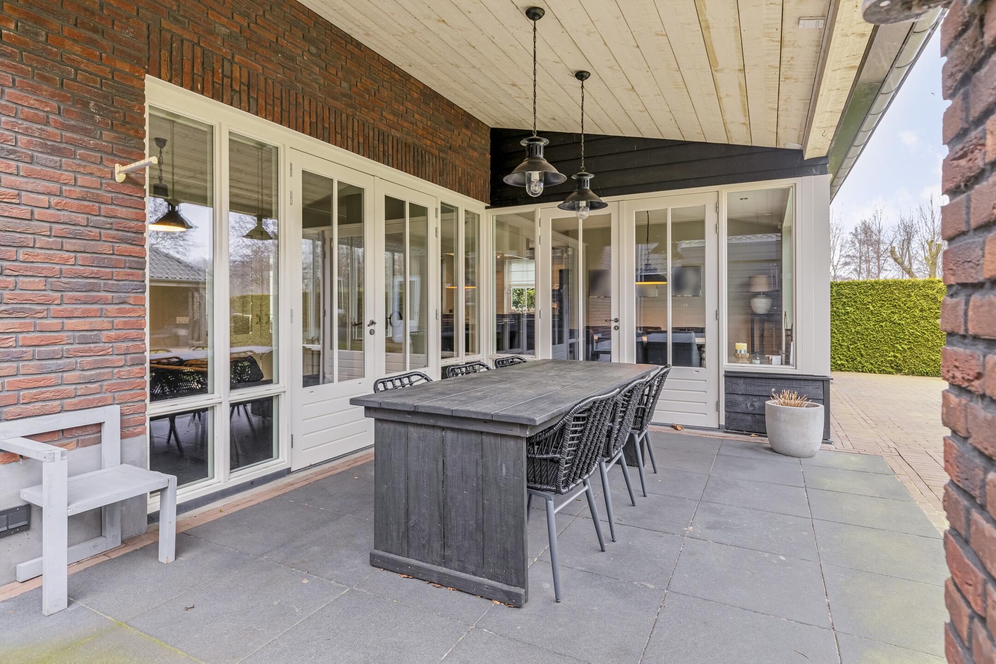 Mooie terrasoverkapping tegen de achtergevel van de woning en een aparte veranda in de achtertuin waar u heerlijk kunt genieten van de zon.