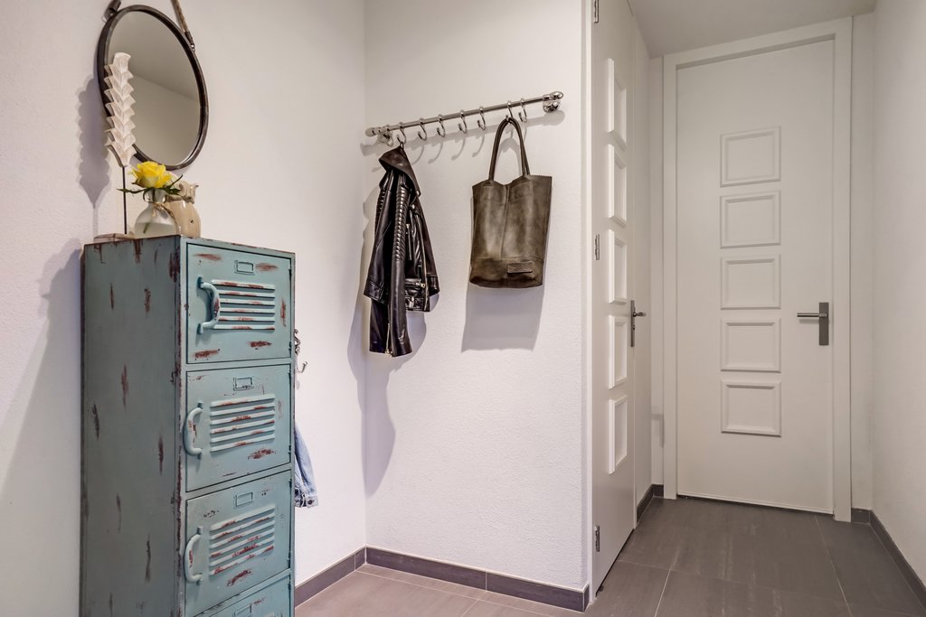 Hal afgewerkt met een tegelvloer voorzien van vloerverwarming, gestukadoorde wanden en -plafond.