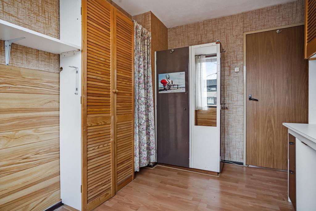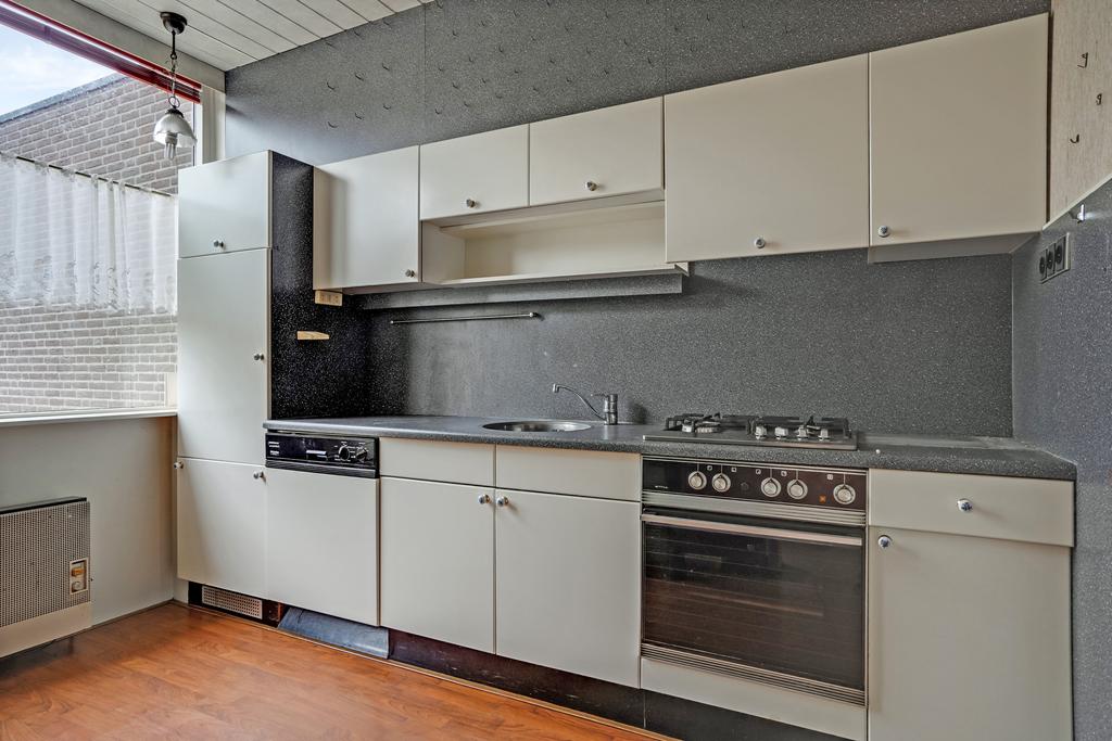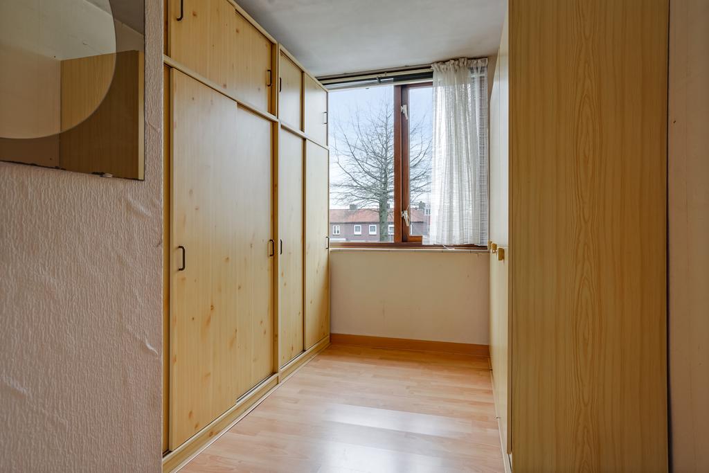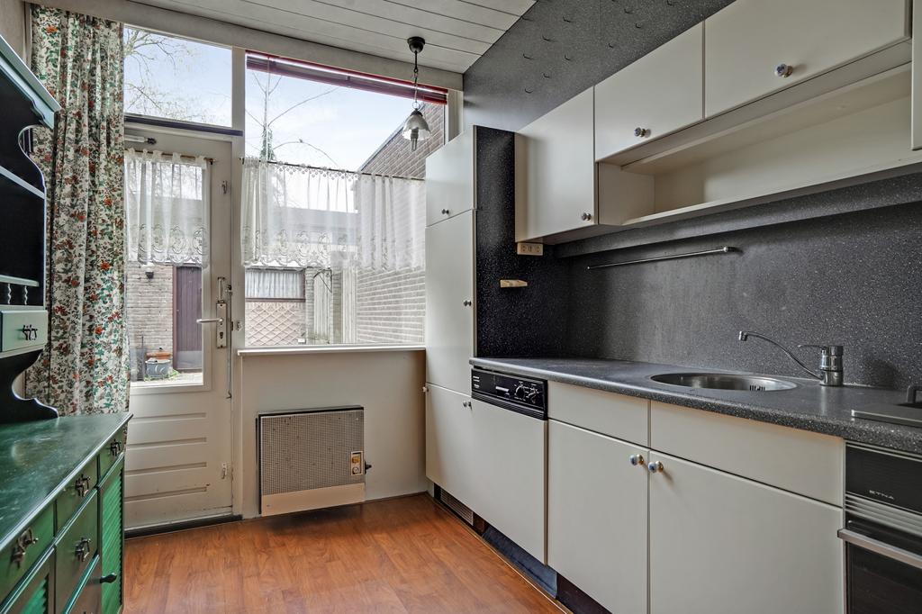 De woning betreedt u via de entree welke toegang biedt tot de hal met de toiletruimte en verdiepte trap/provisiekast. Sfeervolle living met schuifpui aan achterzijde en afgewerkt met een laminaatvloer. Afzonderlijke keuken met een eenvoudige en praktische keukeninrichting voorzien van inbouwapparatuur. Achtertuin met een afsluitbare achterom en toegang tot de berging. Op de 1e verdieping treft u de 4 slaapkamers, badkamer en overloop. Middels vlizotrap te bereiken ruime zolderetage.