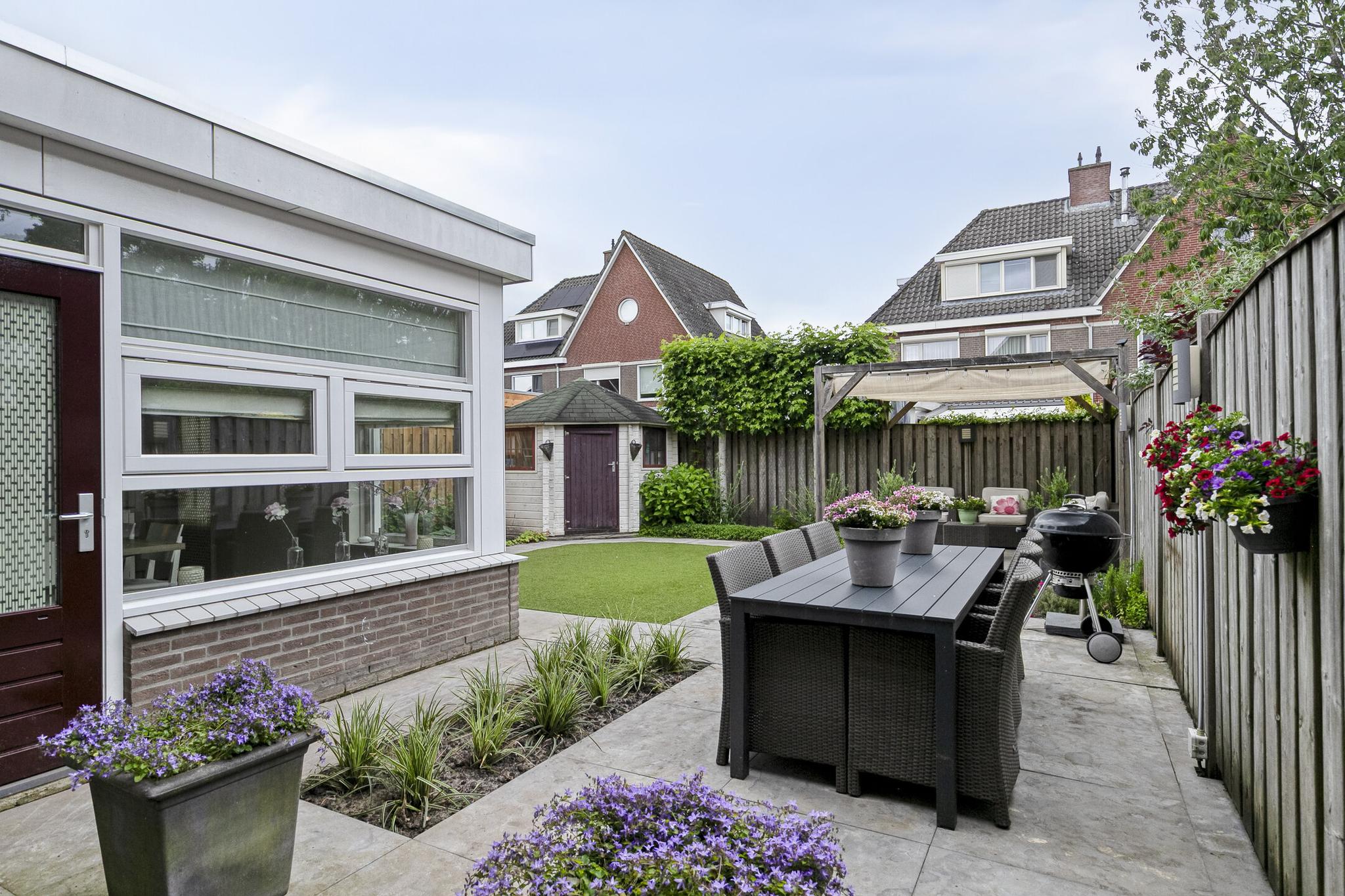 De achtertuin heeft een afmeting van circa 12.00 meter diep en 9.00 m. breed.