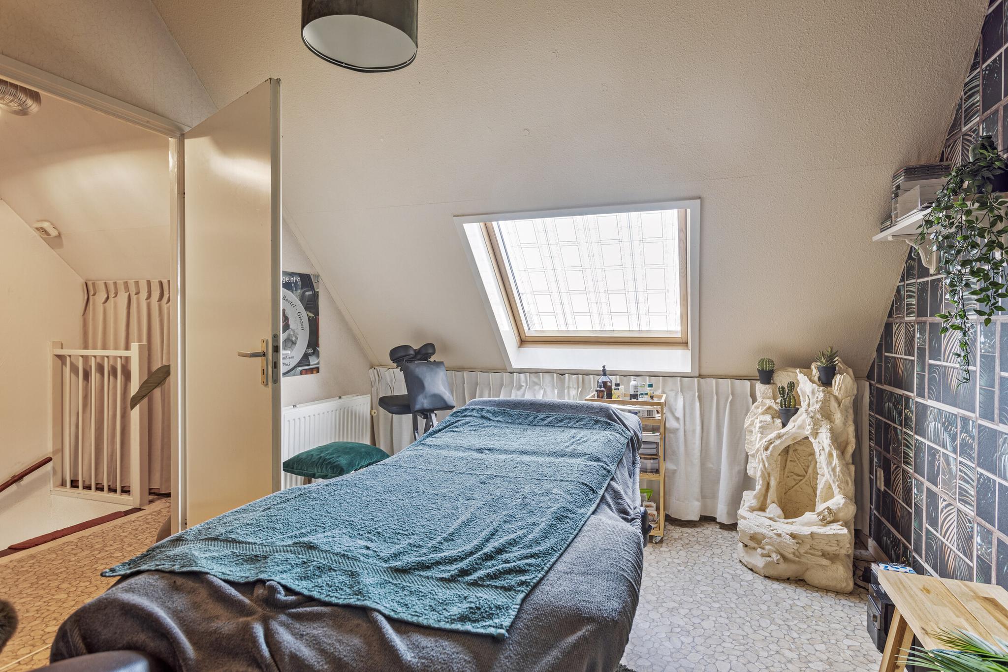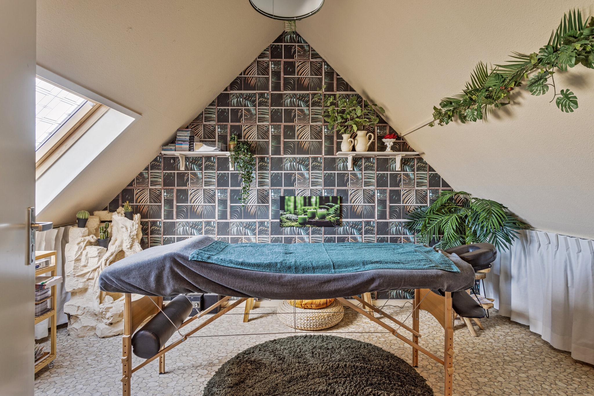 Slaapkamer 4 met een Velux dakvenster en afgewerkt met een Vinylvloer en behangen wanden.