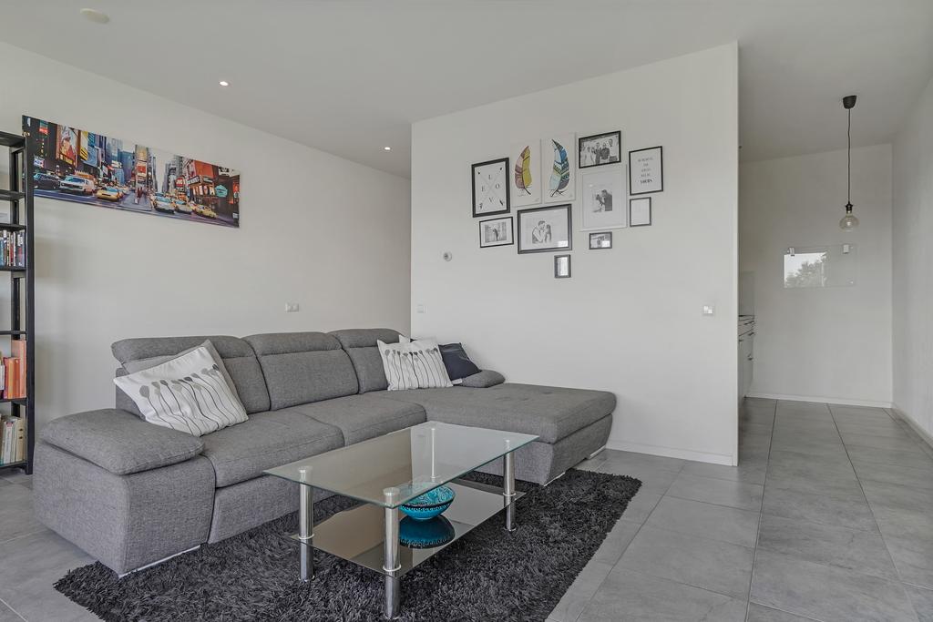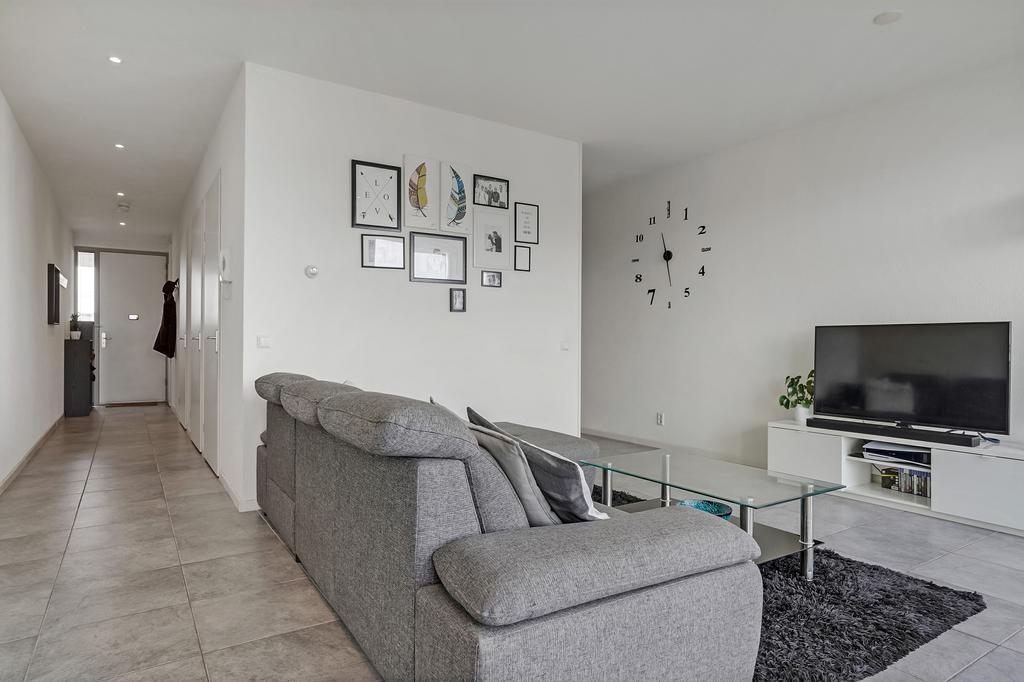 De royale en mooie living met grote raampartijen doorlopend tot de grond en een schitterend uitzicht over een waterpartij en park is afgewerkt met een tegelvloer voorzien van een comfortabele vloerverwarming welke is doorgelegd over de gehele begane grond, stucwerk wanden en een strak stucwerk plafond met inbouwverlichting. De kamer heeft een goede afmeting en vorm met een nis aan voorzijde waar momenteel de eettafel staat.