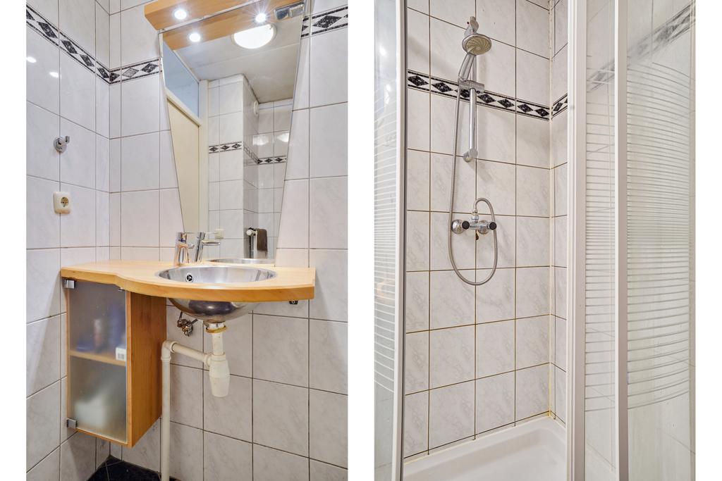 Betegelde badkamer voorzien van een separate douche cabine, 2e closet en een wastafel.