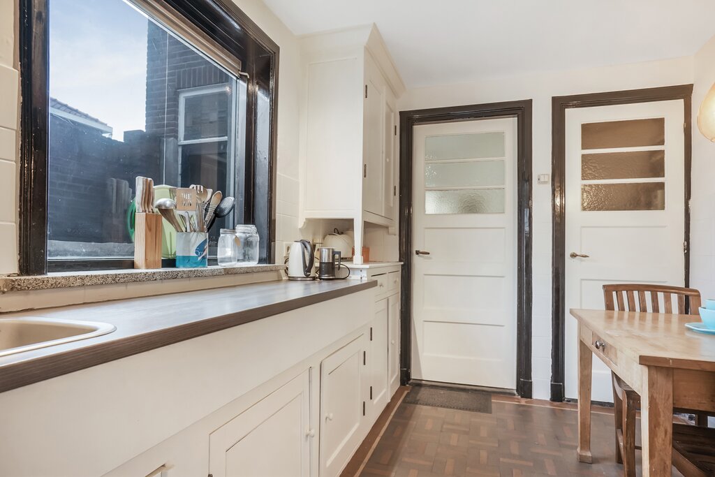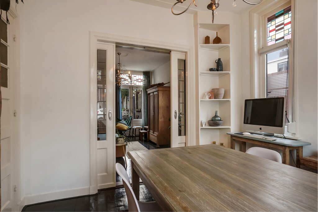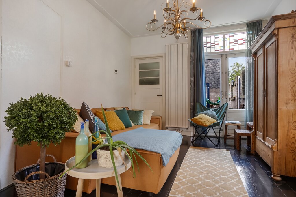 Deze vooroorlogse karakteristieke eindwoning is gelegen op een fijne woonlocatie nabij diverse goede voorzieningen.Entree. Hal. Sfeervolle woonkamer en suite met schuifdeuren en openslaande tuindeuren. Afzonderlijke keuken met een praktische keukeninrichting. Verdiepte trapkast. Bijkeuken met toegang naar de toiletruimte. Achtertuin met een afsluitbare achterom. Op de 1e verdieping bevinden zich de slaapkamer, complete badkamer, separate toiletruimte en de overloop. Via vaste trapopgang te ber...
