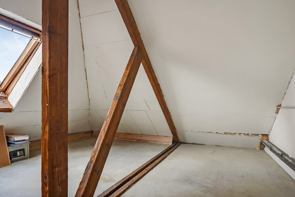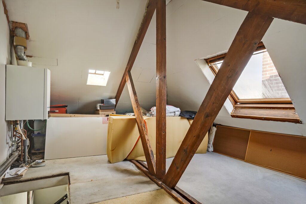 Geïsoleerde zolderetage met een Velux dakvenster en de opstelling van de HR c.v. combiketel uit 2008 (Nefit) (huur).