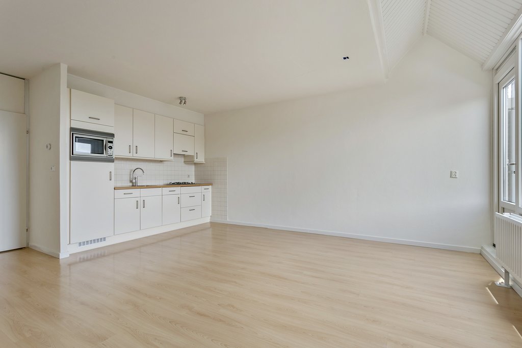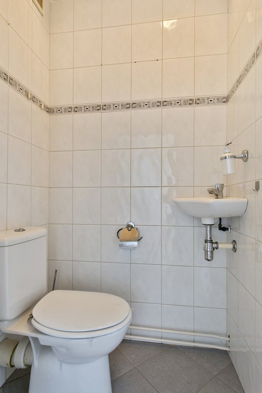 Entree. Hal met de meterkast en toiletruimte. Provisiekast met de opstelling van de HR c.v. combiketel. Gezellige woonkamer afgewerkt met een laminaatvloer. Dakterras van circa 7 m2 vanuit woonkamer te bereiken via een loopdeur. Royale slaapkamer afgewerkt met een laminaatvloer. Betegelde badkamer met een separate douche en wastafel.