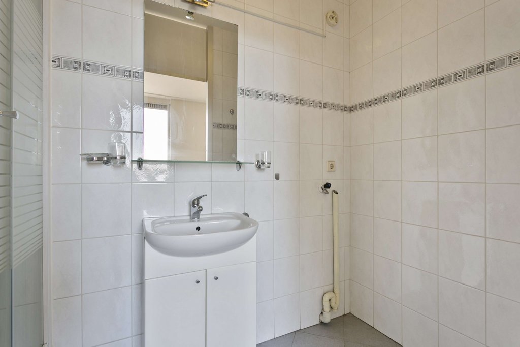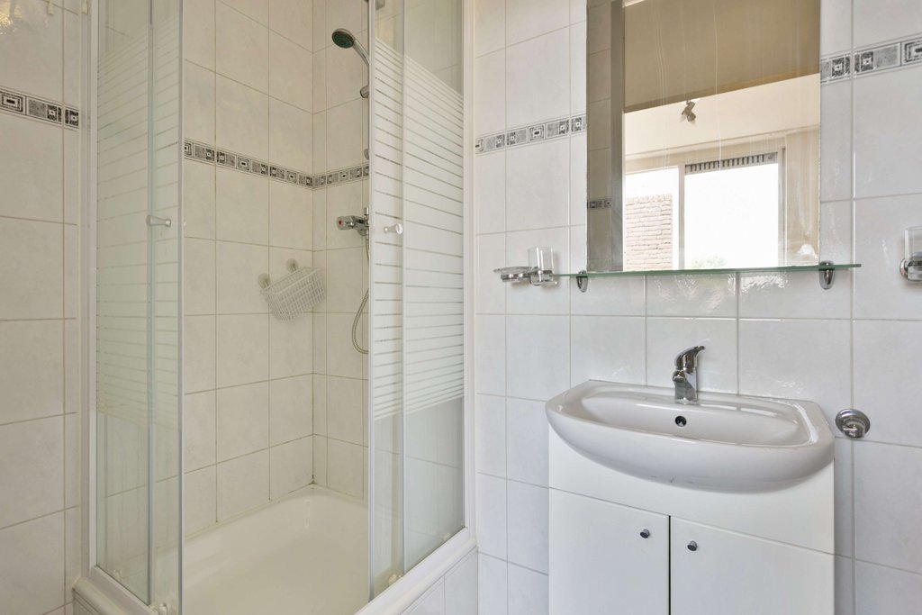 Betegelde badkamer voorzien van een separate douche en wastafel.
