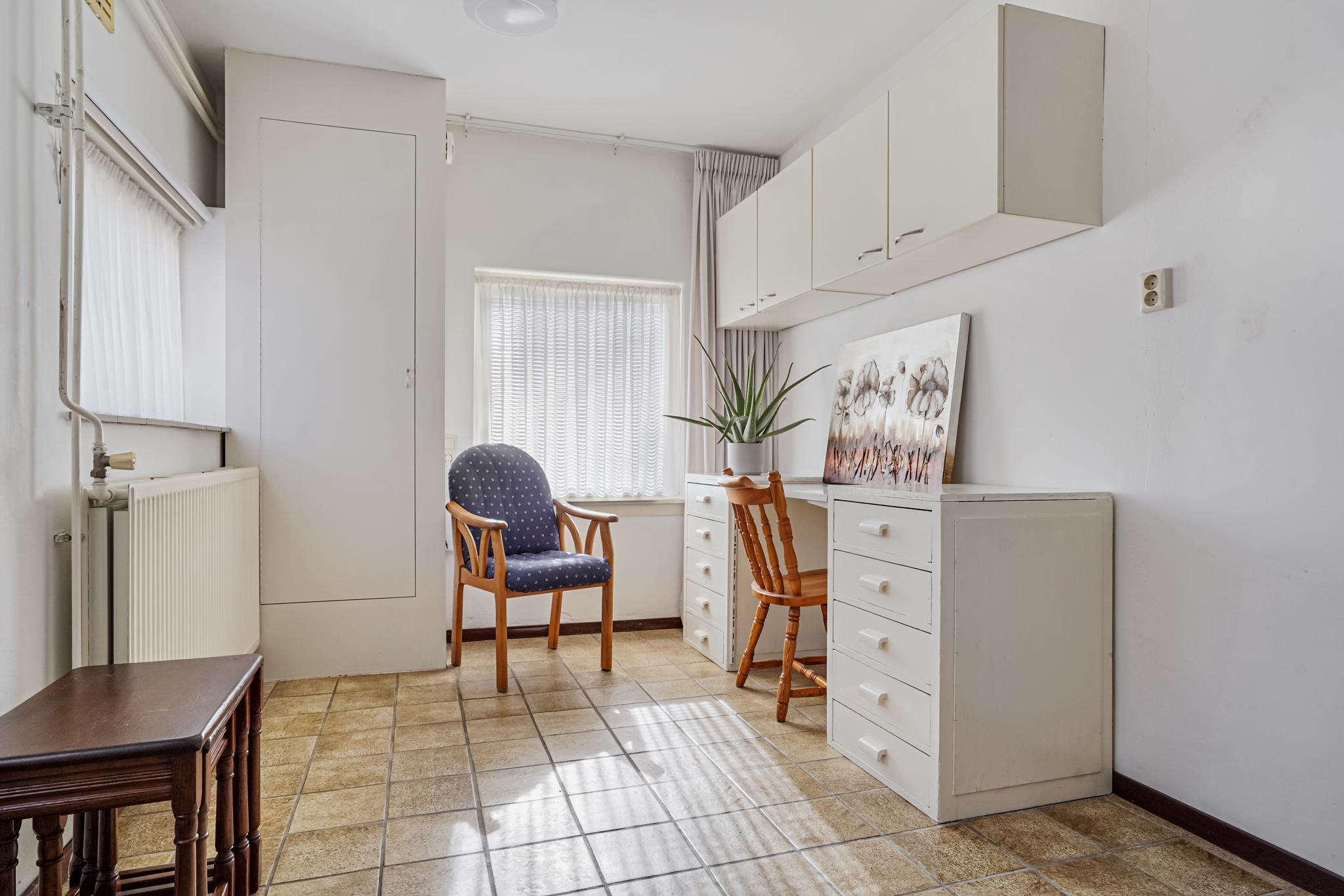 Slaapkamer 1 / werkkamer is afgewerkt met een tegelvloer, pleisterwerk wanden en een pleisterwerk plafond