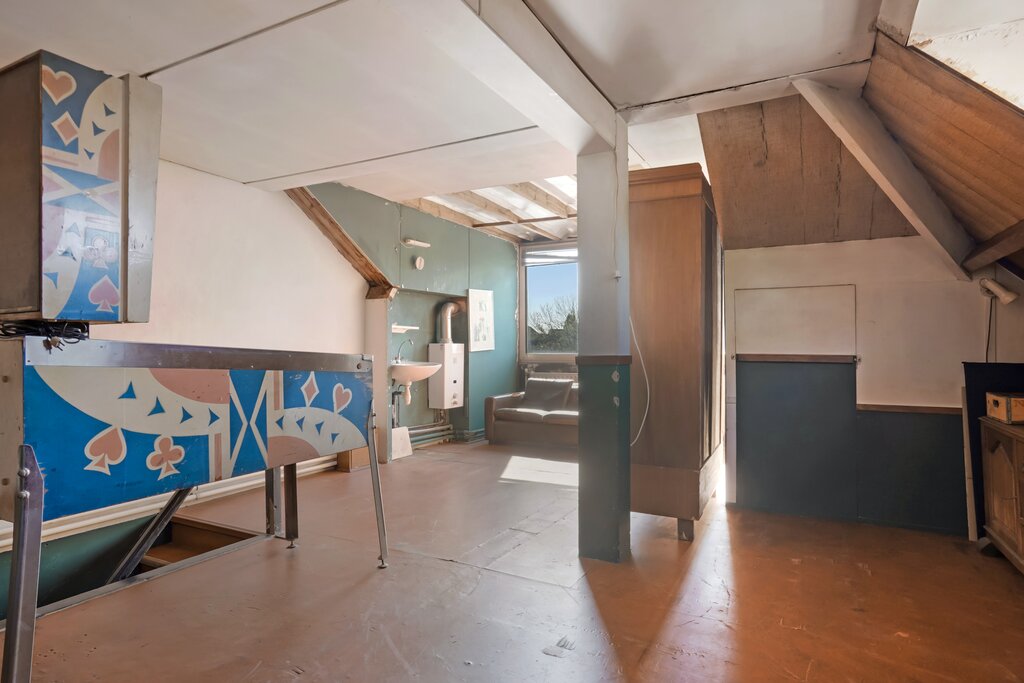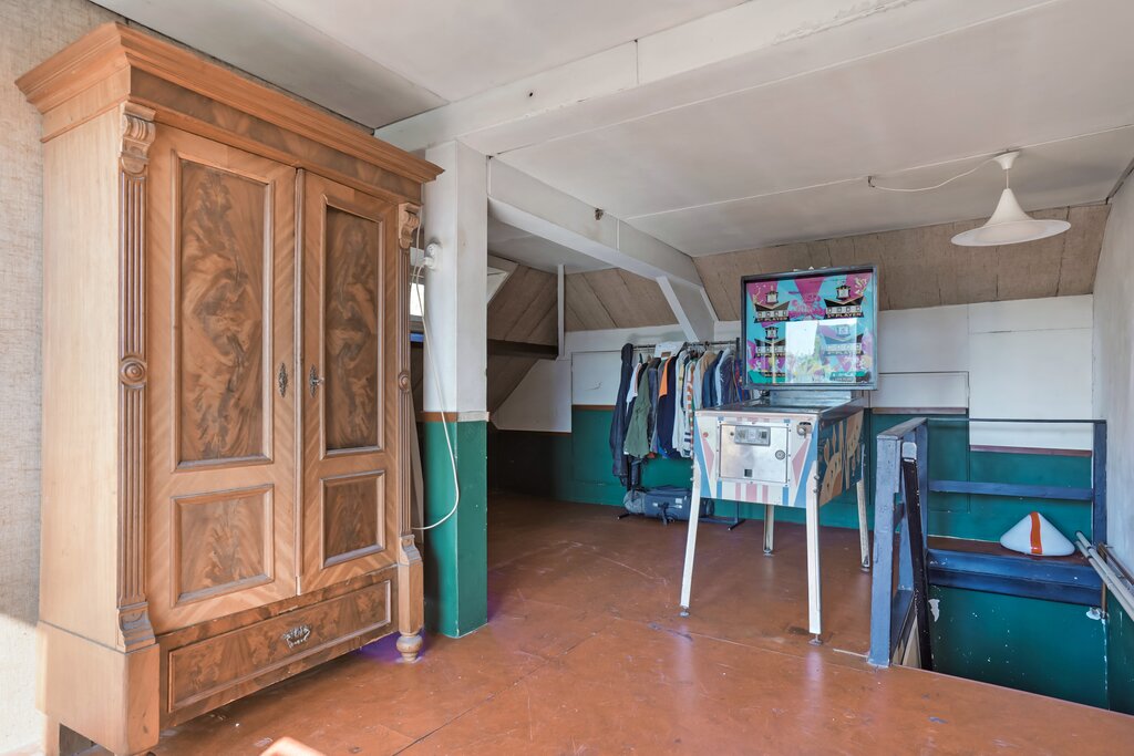 Grote zolderkamer met een dakkapel aan achterzijde en bergkasten rondom onder de schuinte van de kap.