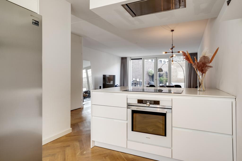 U betreedt de woning via de entree. Hal met de meterkast en toiletruimte. Royale uitgebouwde living met openslaande tuindeuren en een schitterende parketvloer in visgraatmotief gelegd. Open keuken met de eigentijdse Siematic keukeninrichting in hoekopstelling, kookeiland met zitbar en voorzien van inbouwapparatuur. Fraai aangelegde achtertuin met een afsluitbare achterom en toegang tot de separate berging. Op de 1e verdieping treft u de 3 slaapkamers, overloop en complete badkamer. Middels vaste trapopgang te bereiken 2e etage waar zijn gesitueerd de 2 extra slaapkamers, overloop en bergkamer met de opstelling van de HR c.v. combiketel.