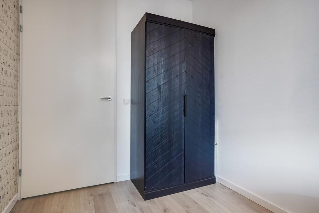 Slaapkamer 2 aan achterzijde is afgewerkt met een laminaatvloer, behangen deels pleisterwerk wanden en een spuitwerk plafond.