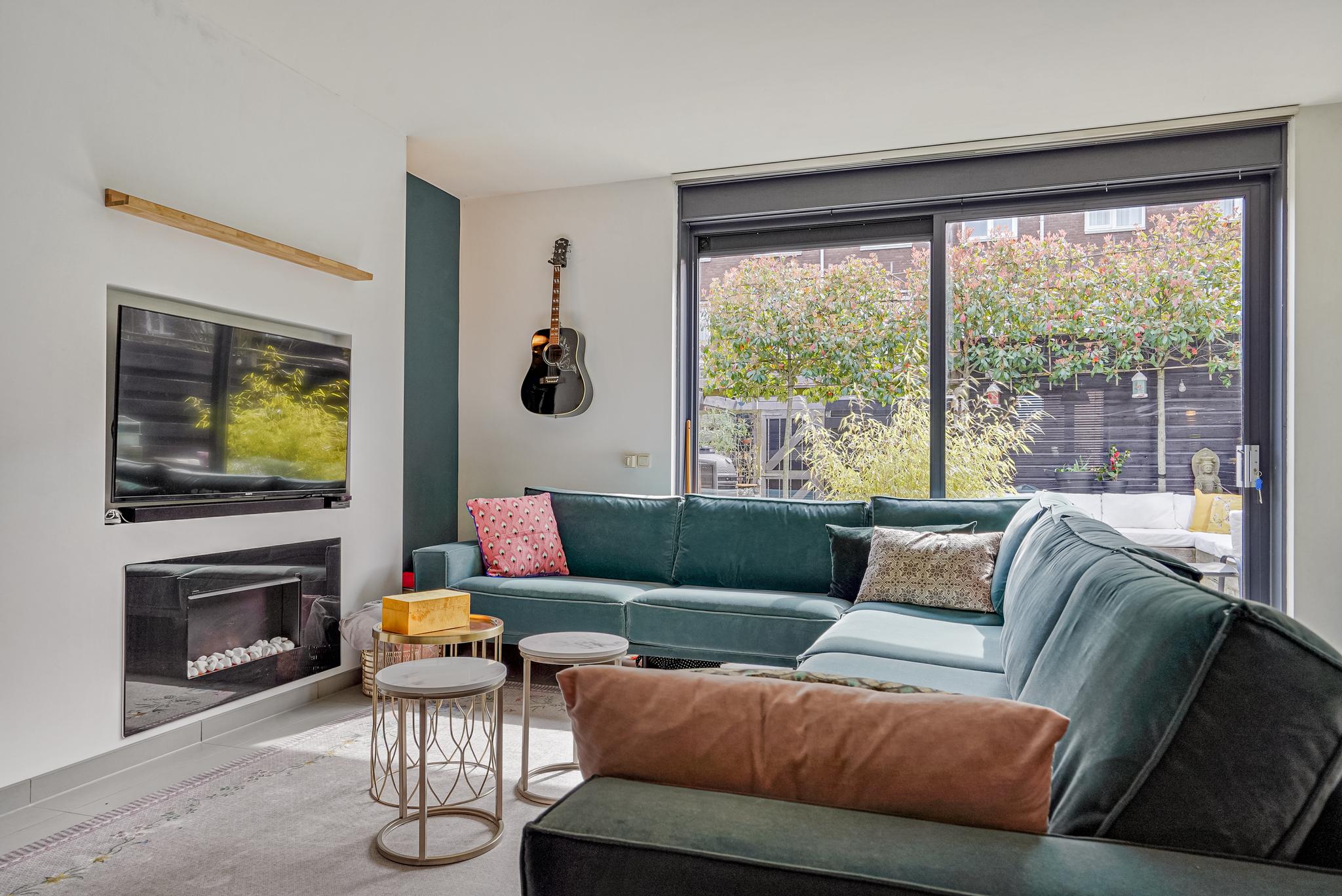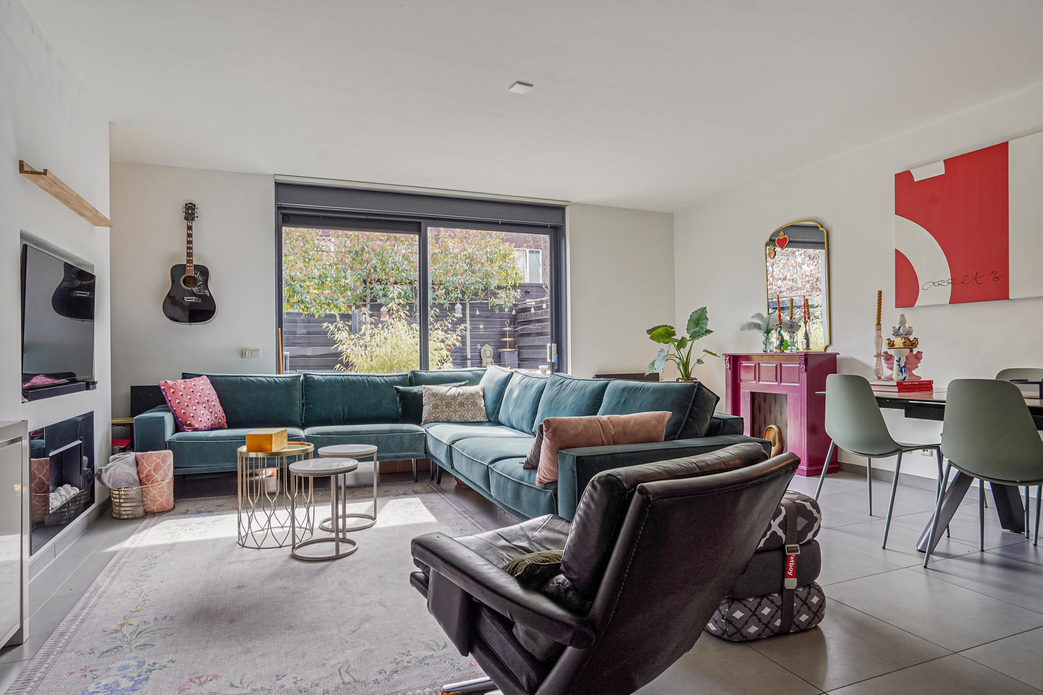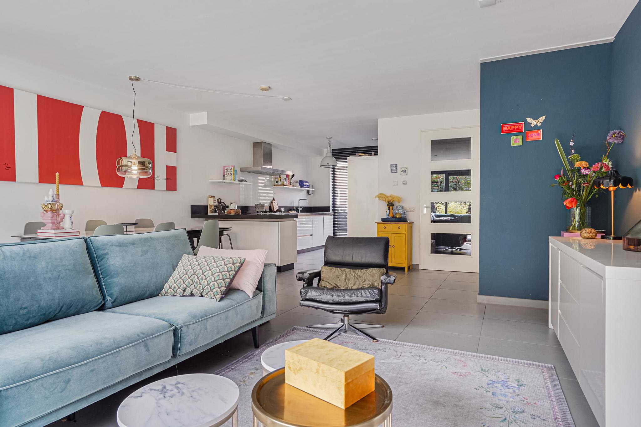 De royale sfeervolle living met schuifpui is afgewerkt met een mooie tegelvloer voorzien van vloerverwarming die is doorgelegd over de gehele begane grond, strak stucwerk wanden en een stucwerk plafond.