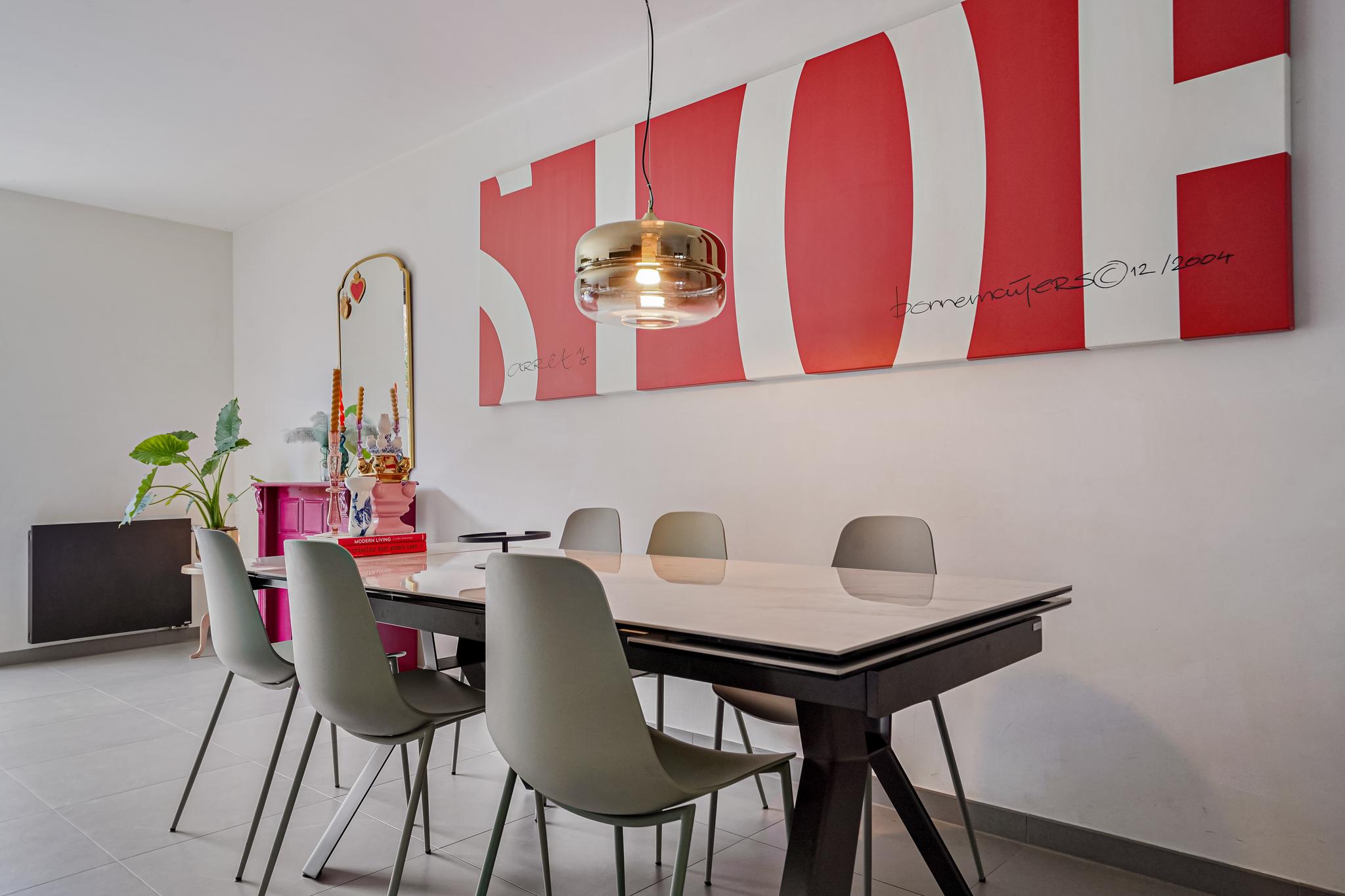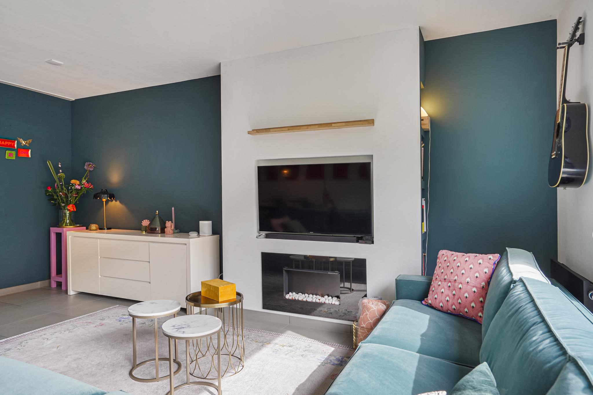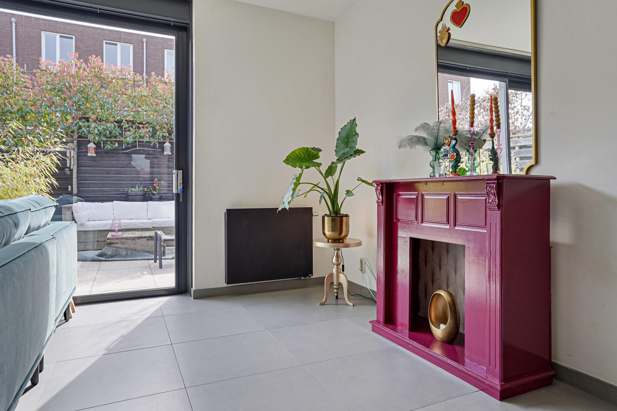 De royale sfeervolle living met schuifpui is afgewerkt met een mooie tegelvloer voorzien van vloerverwarming die is doorgelegd over de gehele begane grond, strak stucwerk wanden en een stucwerk plafond.